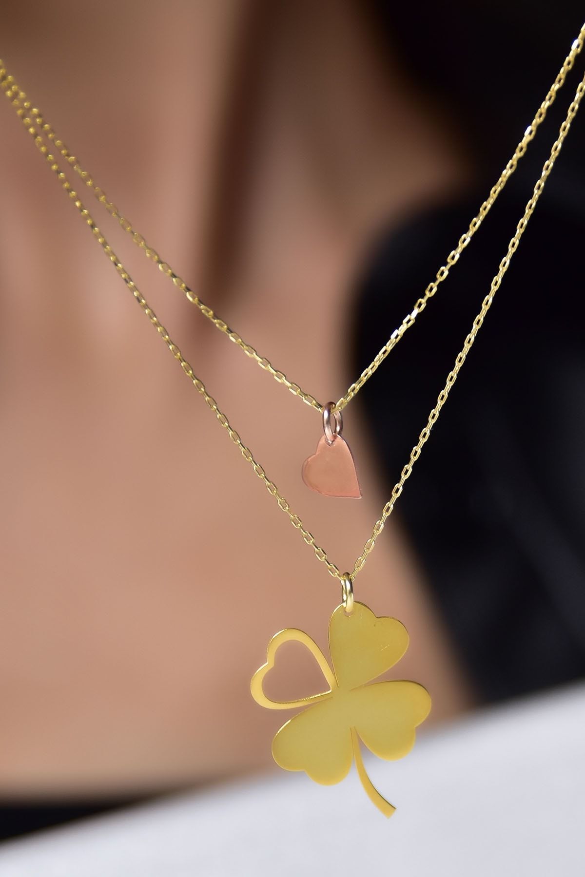 Maden : 925 ayar gümüş. Zincir uzunluğu: 42 cm. Kaplama: Rose-Gold. Ürün ağırlığı :2,16 Gr ( +-). Yonca En* Boy:1,6 x 2 . Kalp En*Boy:5 x 6 mm. Gümüş ve değerli taşlar nedeniyle belirtilen ortalama ürün ağırlığında ± %5 sapma olabilmektedir. Teslimat: Ürün ahşap hediye kutusunda gönderilecektir. Kullanım: Parfüm, dezenfektan, çamaşır suyu gibi kimyasallardan uzak tutunuz.