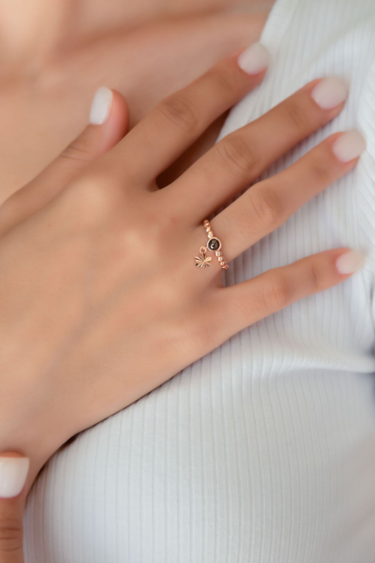 Maden : 925 Ayar Gümüş. Yüzük Ölçüsü: Ayarlanabilir. Taş : Ay Taşı. Renk : Rose Altın. Ürün Ağırlığı : 1,50 Gr ( +-). Gümüş değerli taşlar nedeniyle belirtilen ortalama ürün ağırlığında ± %5 sapma olabilmektedir. Kullanım: Parfüm,dezenfektan,çamaşır suyu gibi kimyasallardan uzak tutunuz.