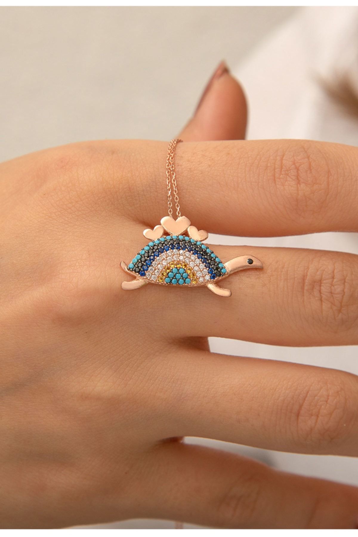 925 Ayar Gümüş Kaplumbağa KolyeMaden : 925 Ayar GümüşKaplama: Rose AltınRenk : Rose AltınTaş: ZirkonZincir uzunluğu : 43 cm.Ürün ağırlığı : 3,50. Gr (+-).Teslimat : Papatya Silver tarafından ürün kutusundagönderilecektir.