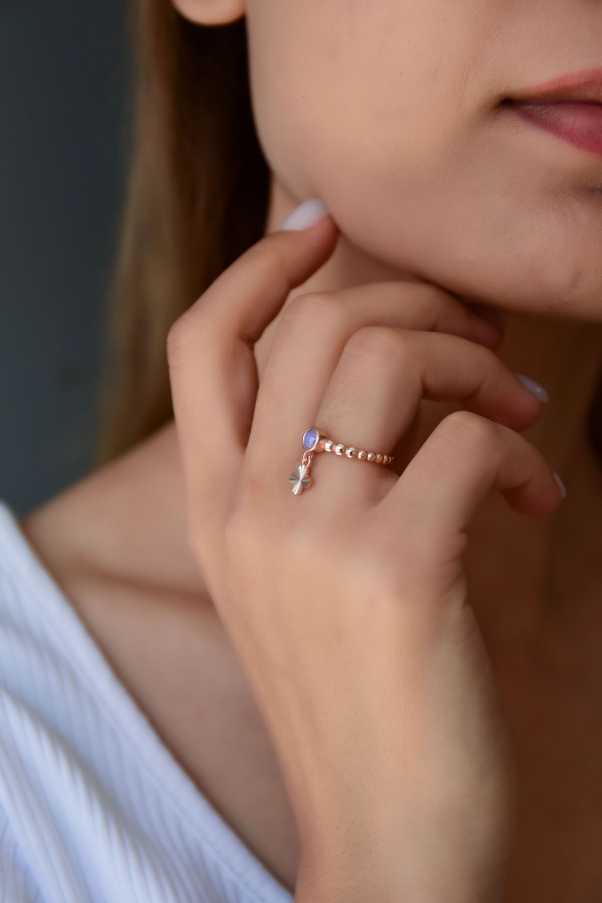 Maden : 925 Ayar Gümüş. Yüzük Ölçüsü: Ayarlanabilir. Taş : Ay Taşı. Renk : Rose Altın. Ürün Ağırlığı : 1,50 Gr ( +-). Gümüş değerli taşlar nedeniyle belirtilen ortalama ürün ağırlığında ± %5 sapma olabilmektedir. Kullanım: Parfüm,dezenfektan,çamaşır suyu gibi kimyasallardan uzak tutunuz.