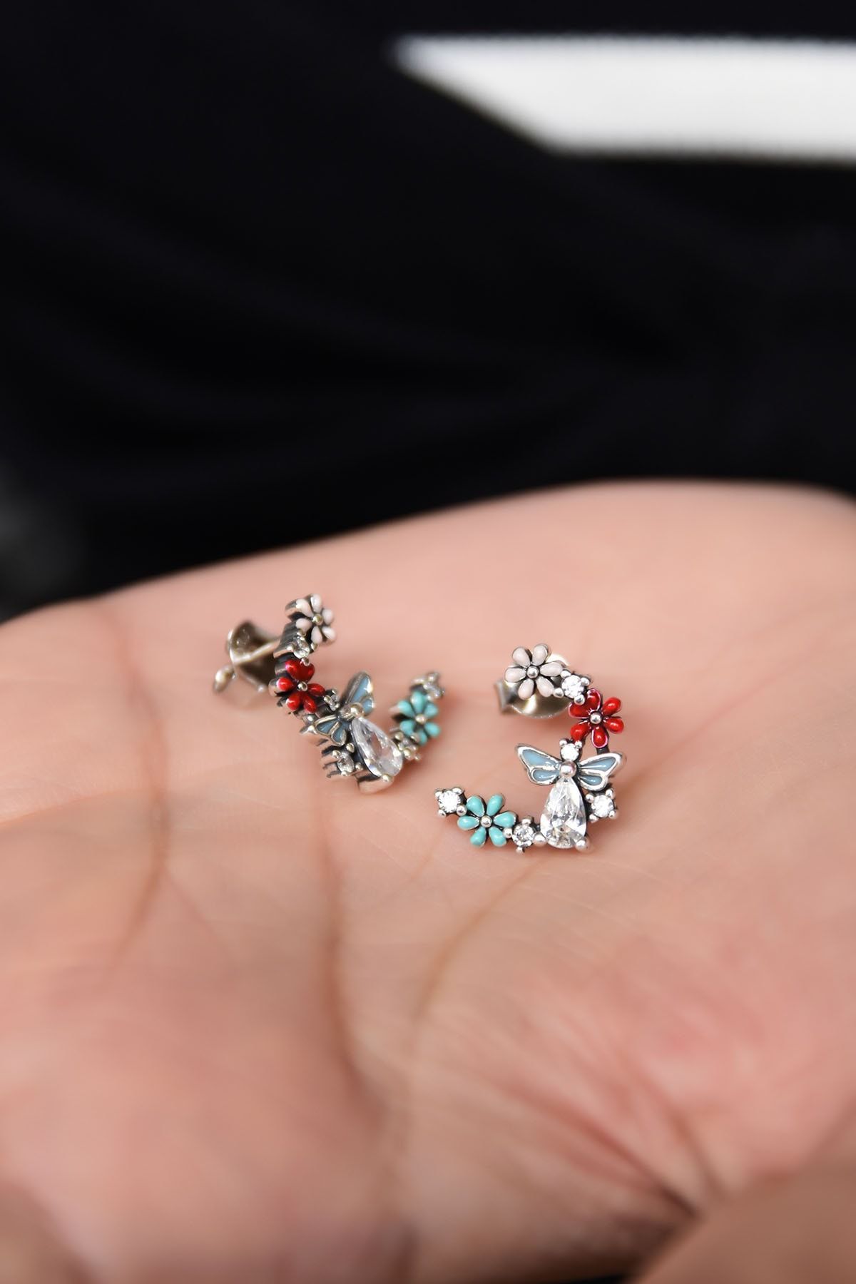 925 Ayar Gümüş Altın Kaplama Mineli Papatya Çivili Küpe