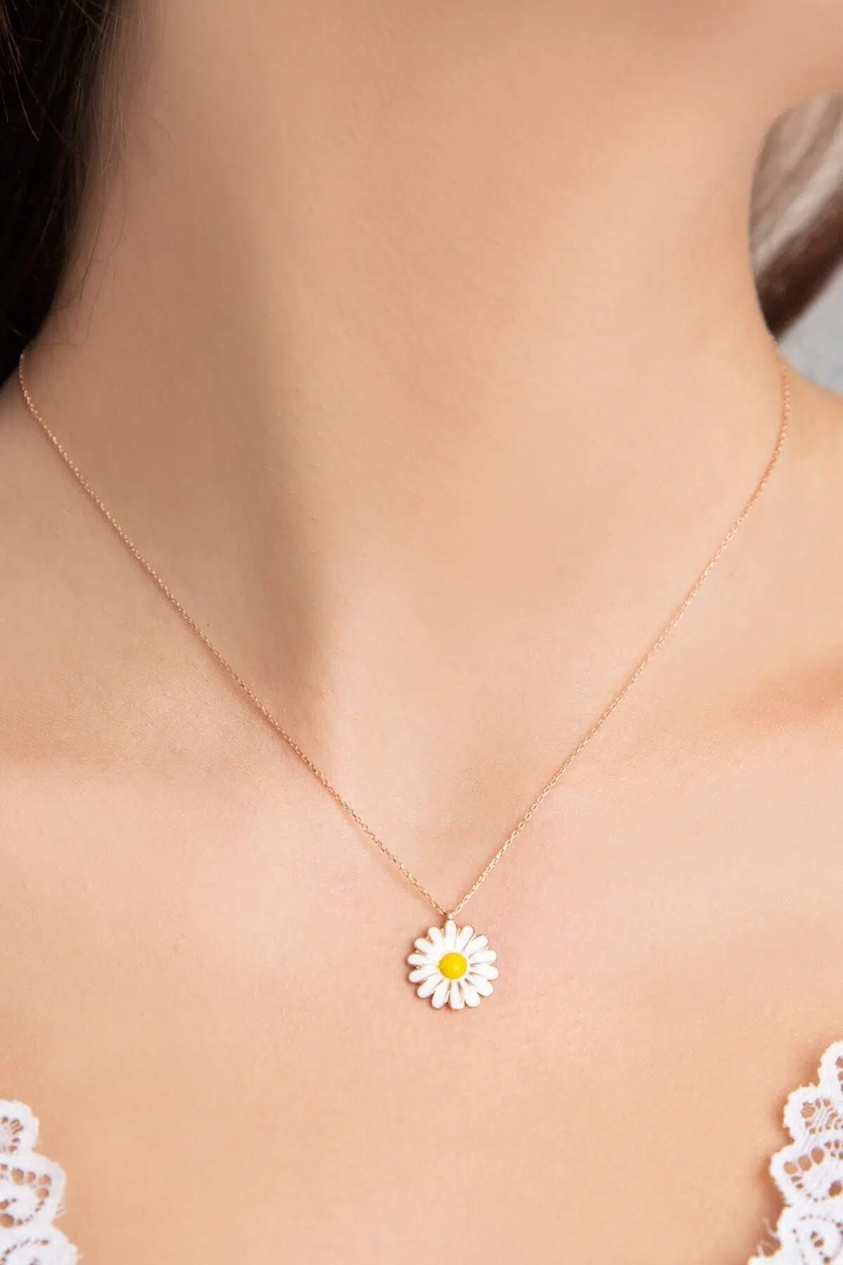 925 Ayar Gümüş Papatya KolyeMaden : 925 Ayar GümüşRenk : Rose AltınZincir uzunluğu : 43 cm.Ürün ağırlığı : 2,30. Gr (+-).Teslimat: Papatya Silver tarafından Ürün ahşap hediye kutusunda gönderilecektir.