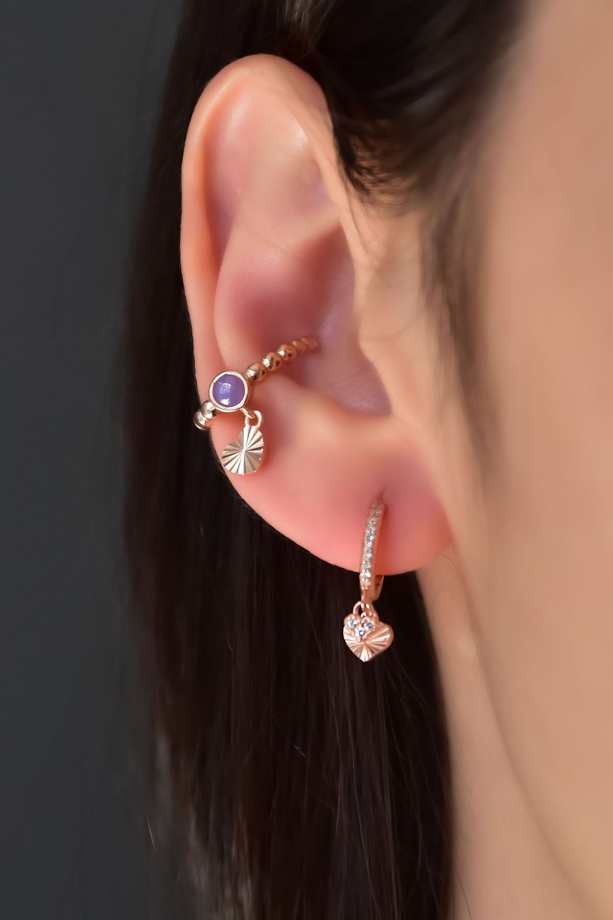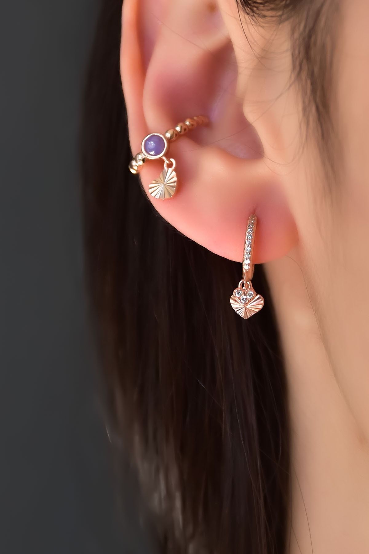 Maden: 925 Ayar Gümüş . Kaplama: Rose. Ağırlık: 2,16 Gr. Ürün Tekli Kıkırdak Küpe Ve Tekli Kalpli Halka Küpe Olarak Gönderilmektedir. Görselde ki Taş Rengi Ve Figürü Değiştirmek İçin Lütfen Müşteri Sorularından Satıcı ile İletişime Geçiniz. Teslimat: Ürün kutu ile gönderilecektir. ''gümüş ürünlerin yapısı gereği kararmalar meydana gelebilir daha uzun ömürlü olması için Parfüm gibi kozmetik ürünlere direkt temas etmediği sürece ürün ömrü daha uzun olacaktır.''