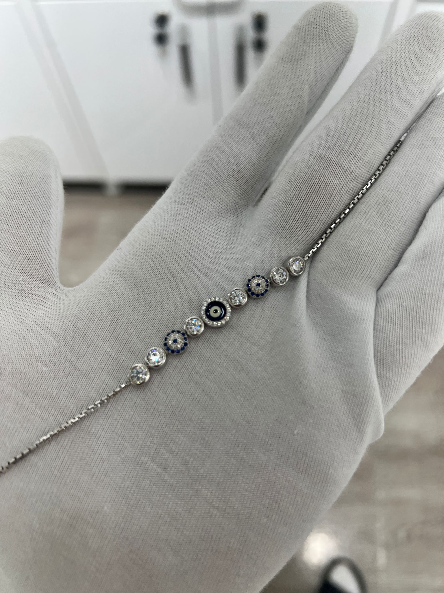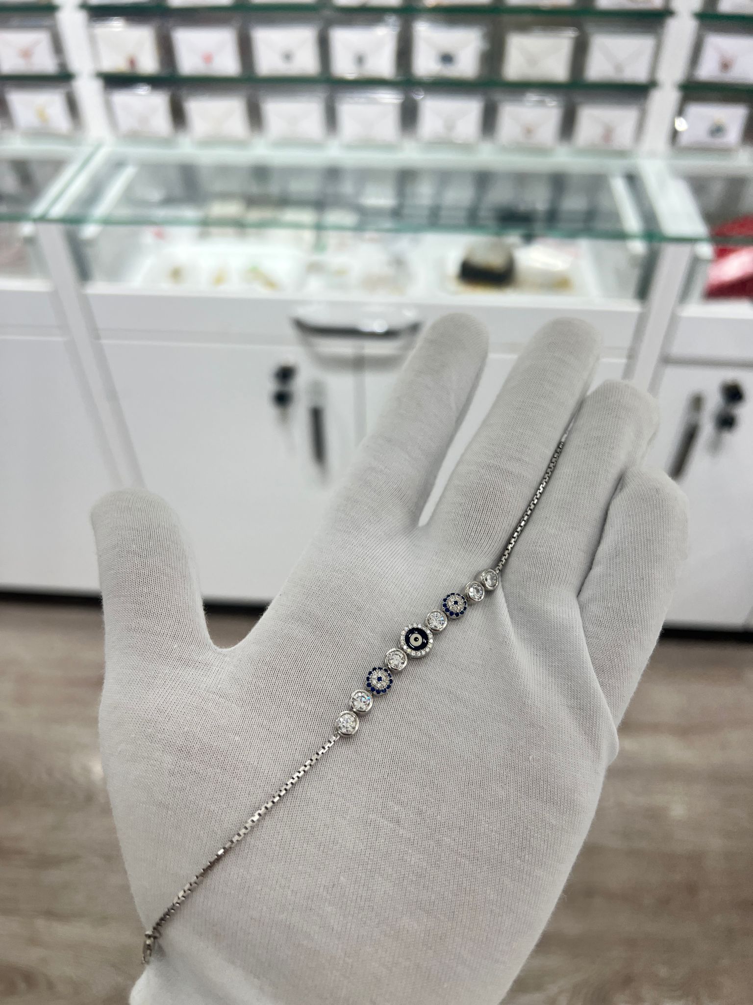 925 Ayar Gümüş Rodyum Kaplama Dalgalı Nazar Bileklik