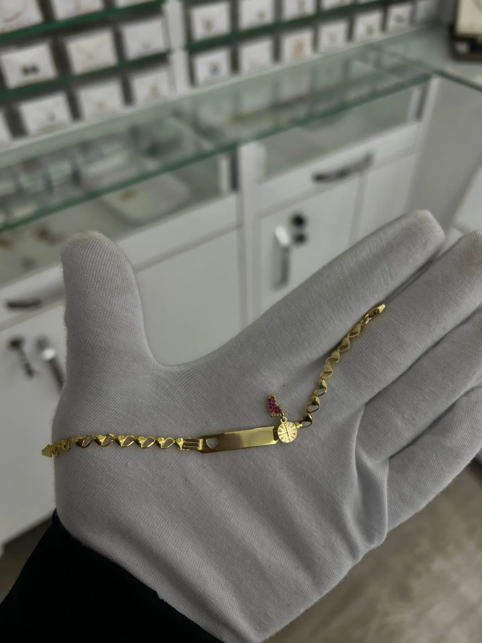 Maden : 925 Ayar Gümüş . Kaplama :Gold. Ağırlık:4,50 gr. Zincir Boyu: 1-5 YAŞ. Lütfen İstenilen İsmi Satın Aldıktan Sonra Satıcıya Soru Sor Kısmından Bildiriniz. Teslimat: Ürün ahşap hediye kutusunda gönderilecektir. Gümüş ve değerli taşlar nedeniyle belirtilen ortalama ürün ağırlığında ± %5 sapma olabilmektedir. Kullanım: Parfüm, dezenfektan, çamaşır suyu gibi kimyasallardan uzak tutunuz.