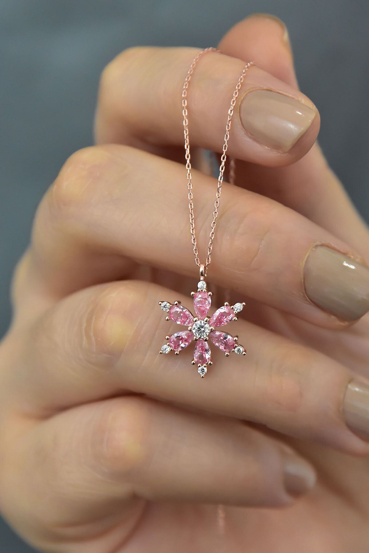 Maden : 925 Ayar Gümüş.Kaplama: Rose Altın. .Renk : Pembe.Taş: Zirkon.Ürün Ebat En x Boy: 1,5 x 1,5 cm.Zincir Uzunluğu: 42 cm.Ürün Ağırlığı : 2,35 Gr ( +-). Gümüş ve değerli taşlar nedeniyle belirtilen ortalama ürün ağırlığında ± %5 sapma olabilmektedir.Teslimat: Ürün ahşap hediye kutusunda gönderilecektir.Kullanım: Parfüm,dezenfektan,çamaşır suyu gibi kimyasallardan uzak tutunuz.