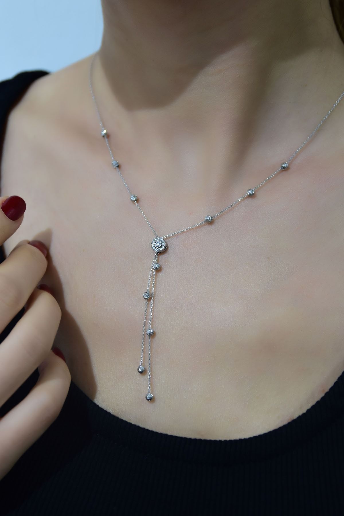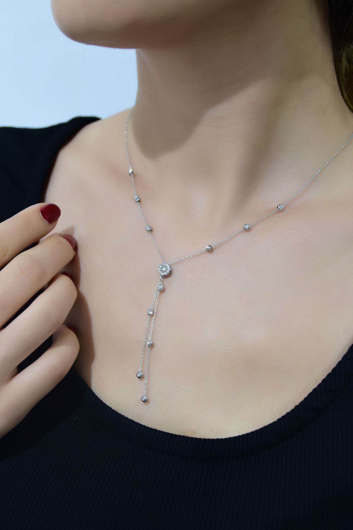 Etiketler925 Ayar Gümüş Rodyum Kaplama Akışlı Dorika Toplu Tek Taş Kadın Kolye