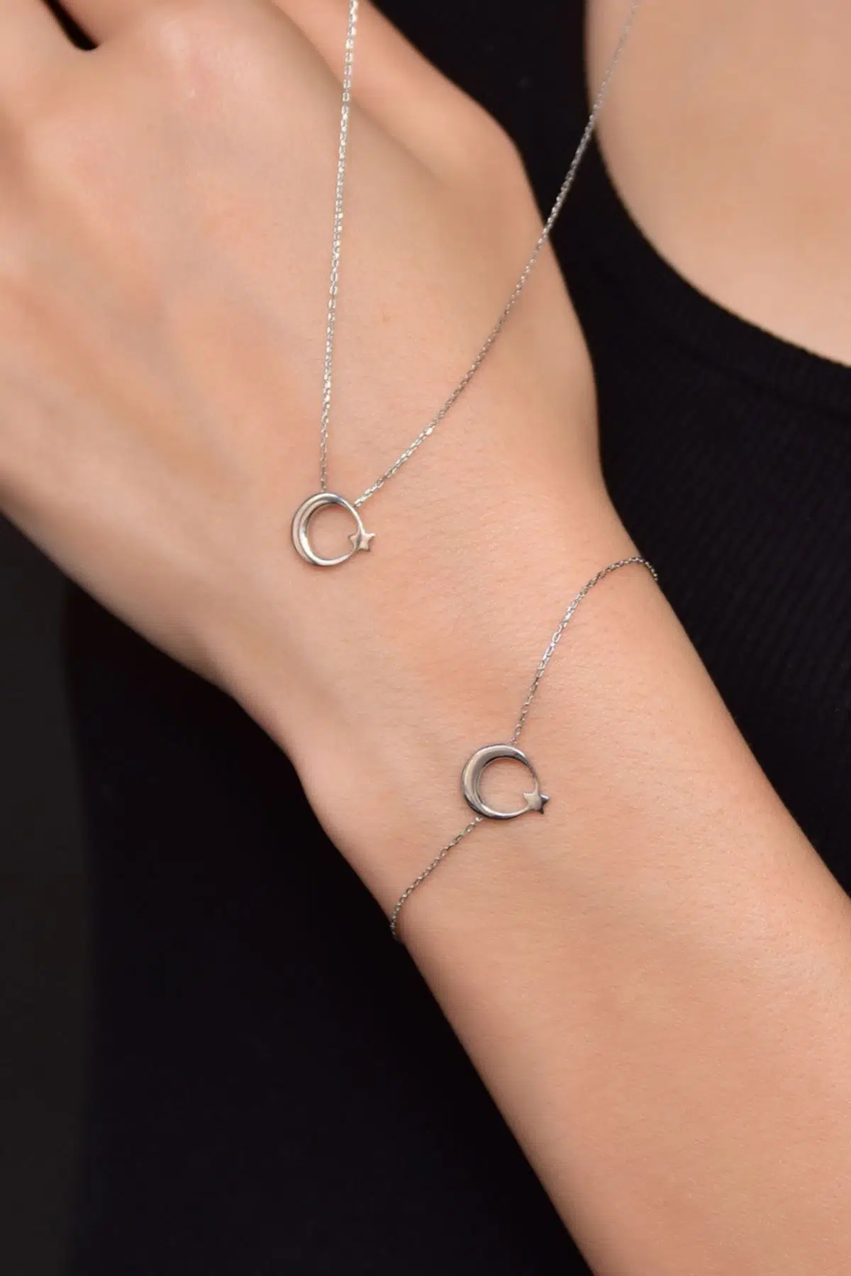 | Etiketler | 925 Ayar Gümüş Rodyum Kaplama Ay Yıldız Kolye Ve Bileklik Set |