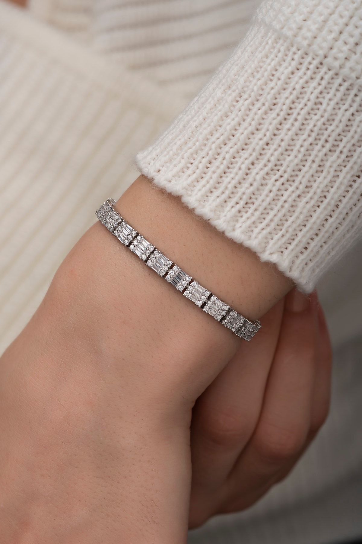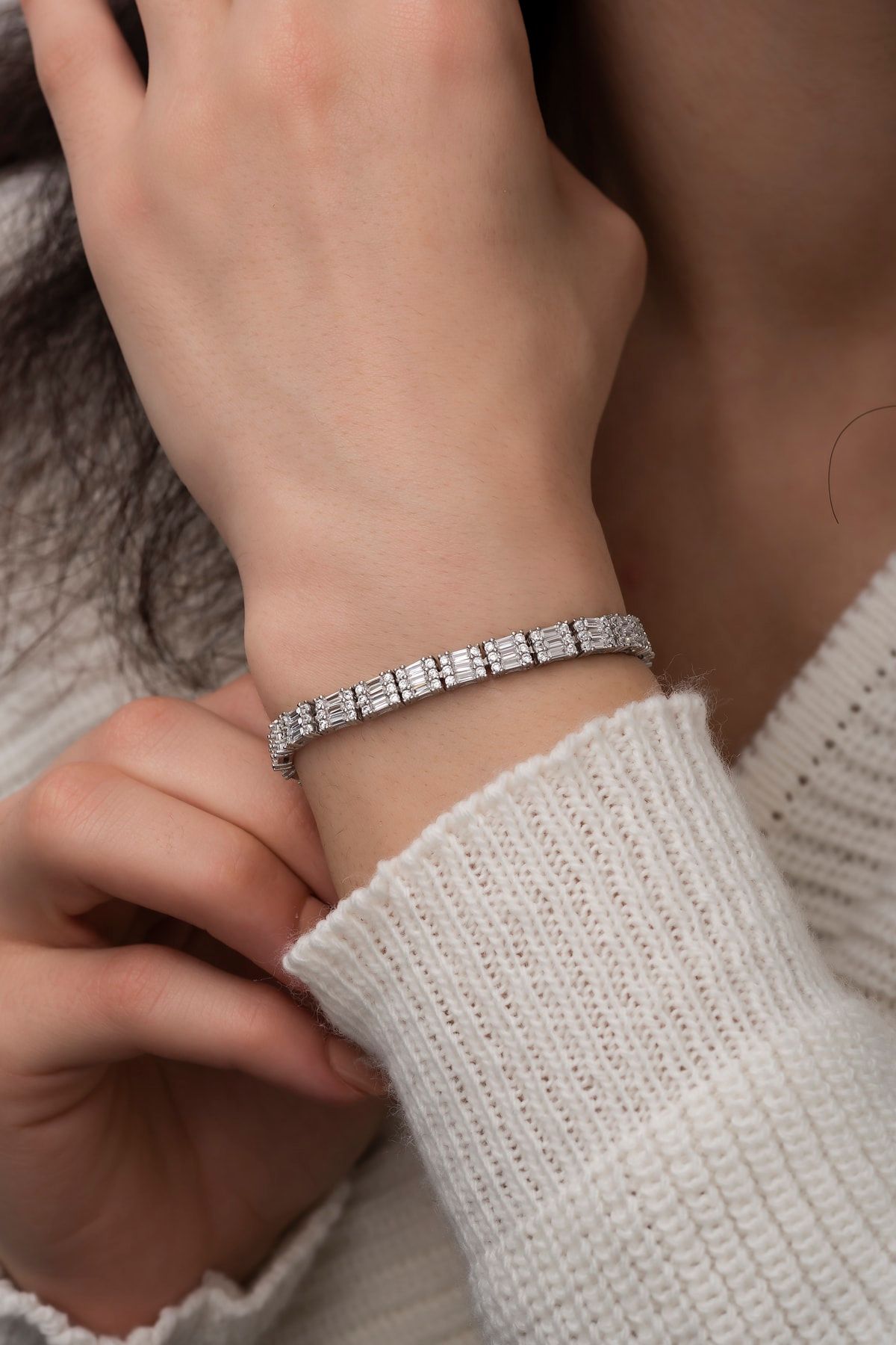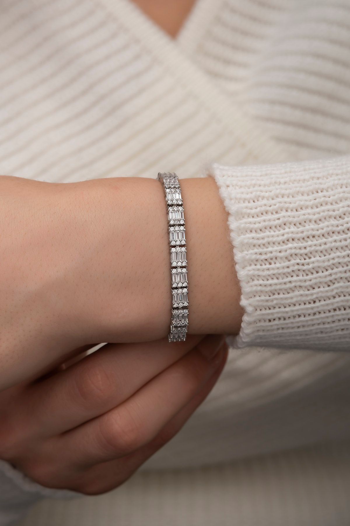 Maden Ayar: 925 Ayar Gümüş. Maden Kaplama: Rodyum Kaplama. Taş: Baget Zirkon. Zincir Uzunluğu: 16 + 3 cm. Ürün Ağırlığı: 12,90 Gr. ( +-). Gümüş ve değerli taşlar nedeniyle belirtilen ortalama ürün ağırlığında ± %5 sapma olabilmektedir. Teslimat: Ürün kutu ile gönderilecektir. Kullanım: Parfüm,dezenfektan,çamaşır suyu gibi kimyasallardan uzak tutunuz.