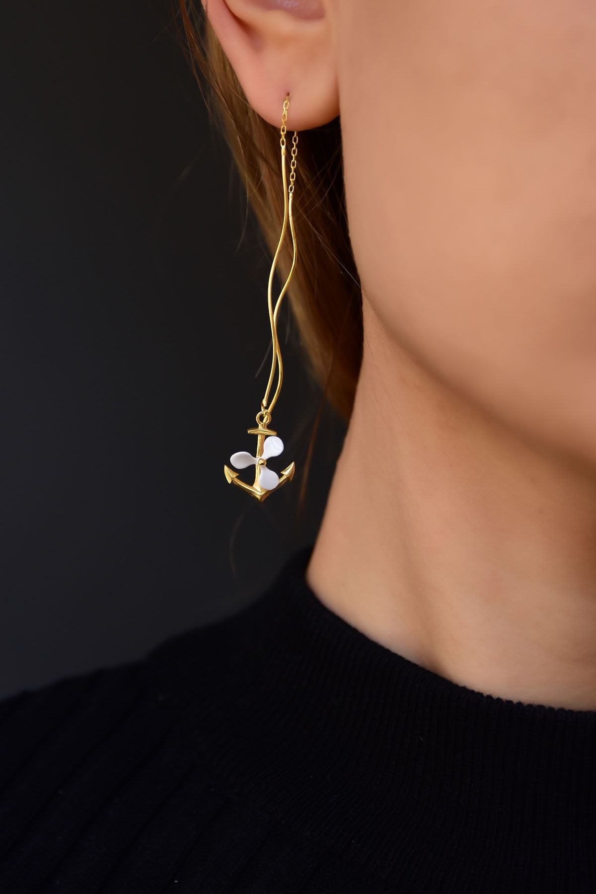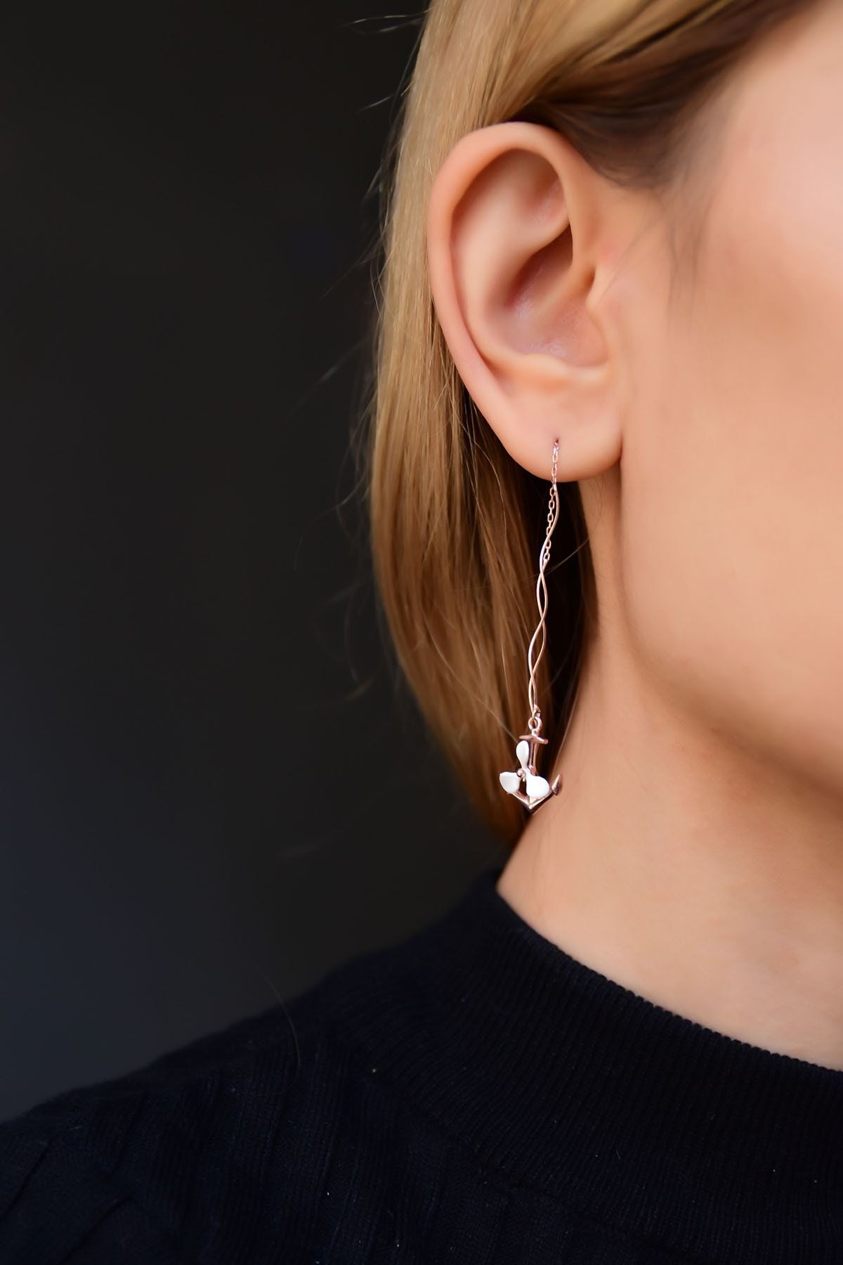 925 Ayar Gümüş Rose Kaplama Mavi Mine S Harf Çivili Küpe