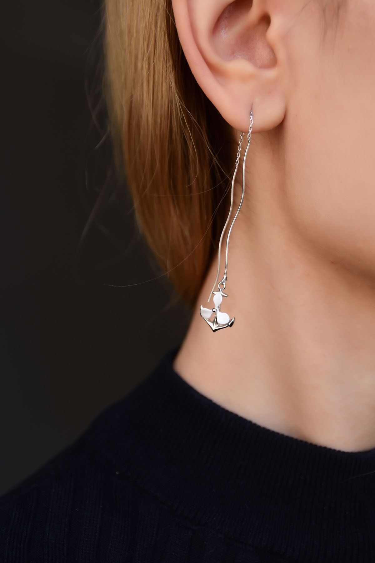 925 Ayar Gümüş Rodyum Kaplama Baget Taşlı Küpe
