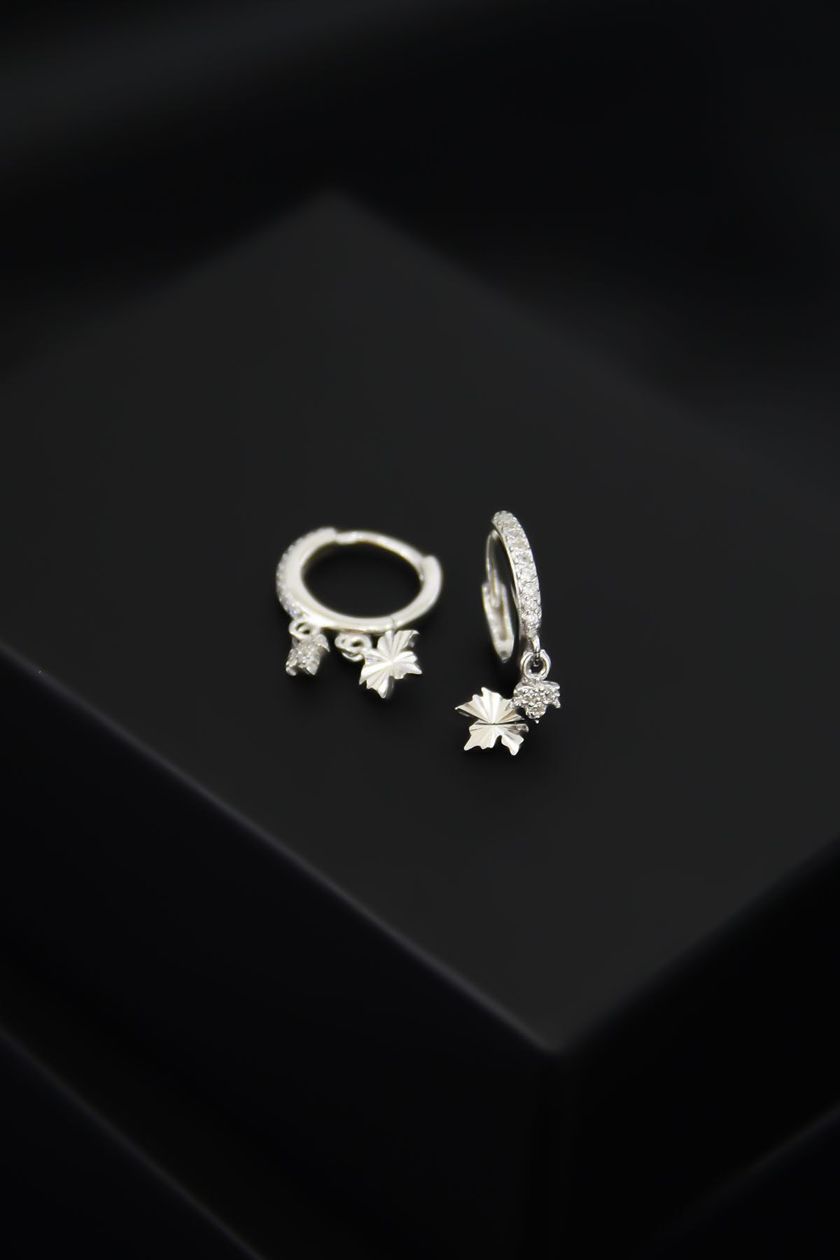 925 Ayar Gümüş Rodyum Kaplama Çınar Yaprağı Figürlü Halka Kadın Küpe