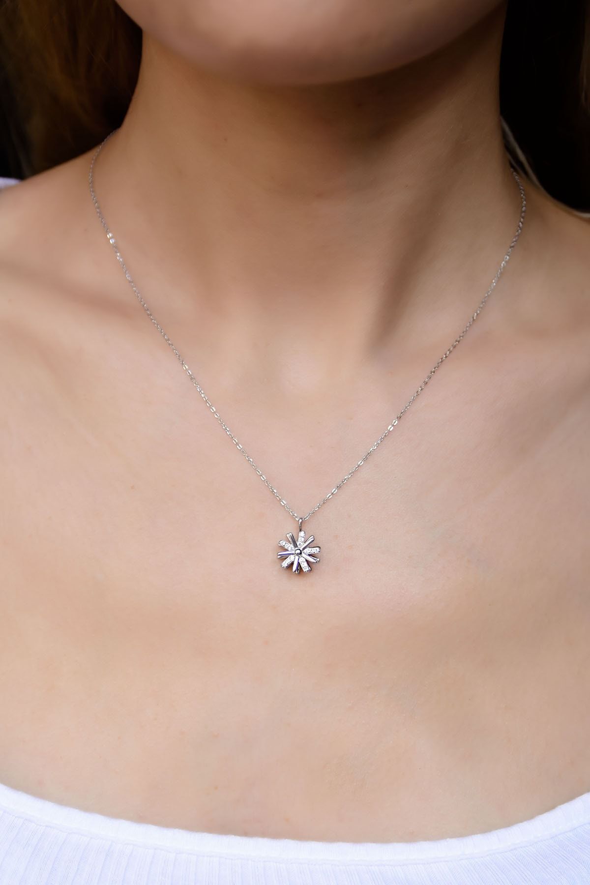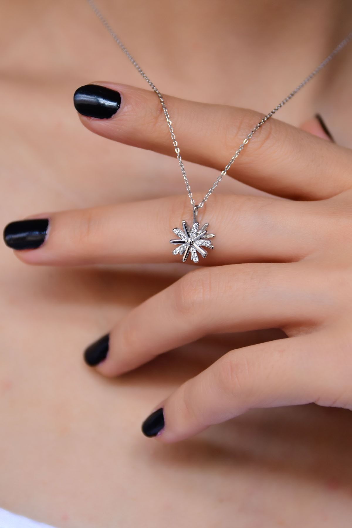 Maden : 925 Ayar Gümüş. Ürün dönmektedir. Kaplama: Rodyum. Taş: Zirkon. Figür: 1,0 cm. Zincir Uzunluğu: 42 cm. Ürün Ağırlığı : 2,38 Gr ( +-). Gümüş ve değerli taşlar nedeniyle belirtilen ortalama ürün ağırlığında ± %5 sapma olabilmektedir. Teslimat: Ürün ahşap hediye kutusunda gönderilecektir. Kullanım: Parfüm,dezenfektan,çamaşır suyu gibi kimyasallardan uzak tutunuz.