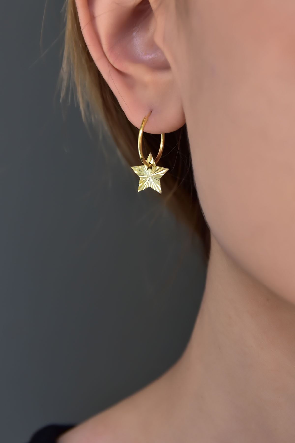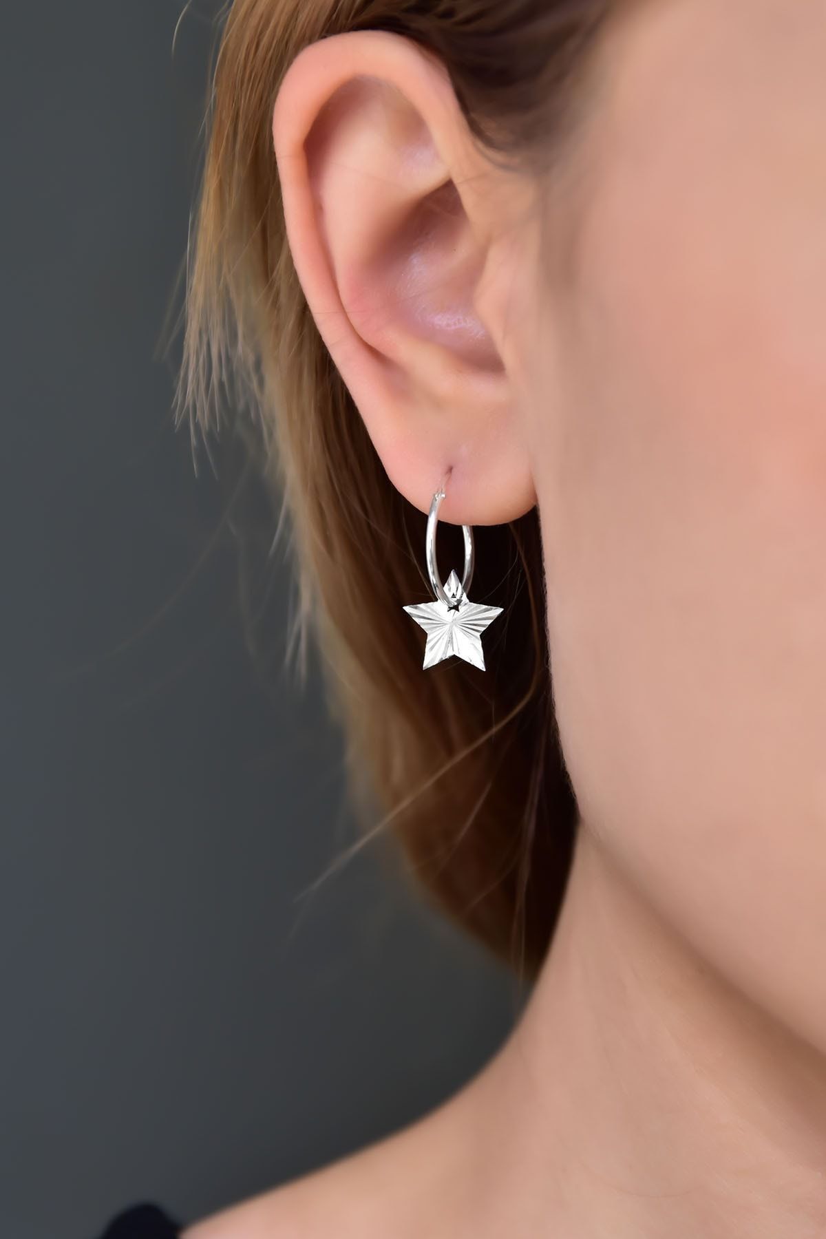 Etiketler925 Ayar Gümüş Rodyum Kaplama Fırfırlı Yıldız Halka Küpe