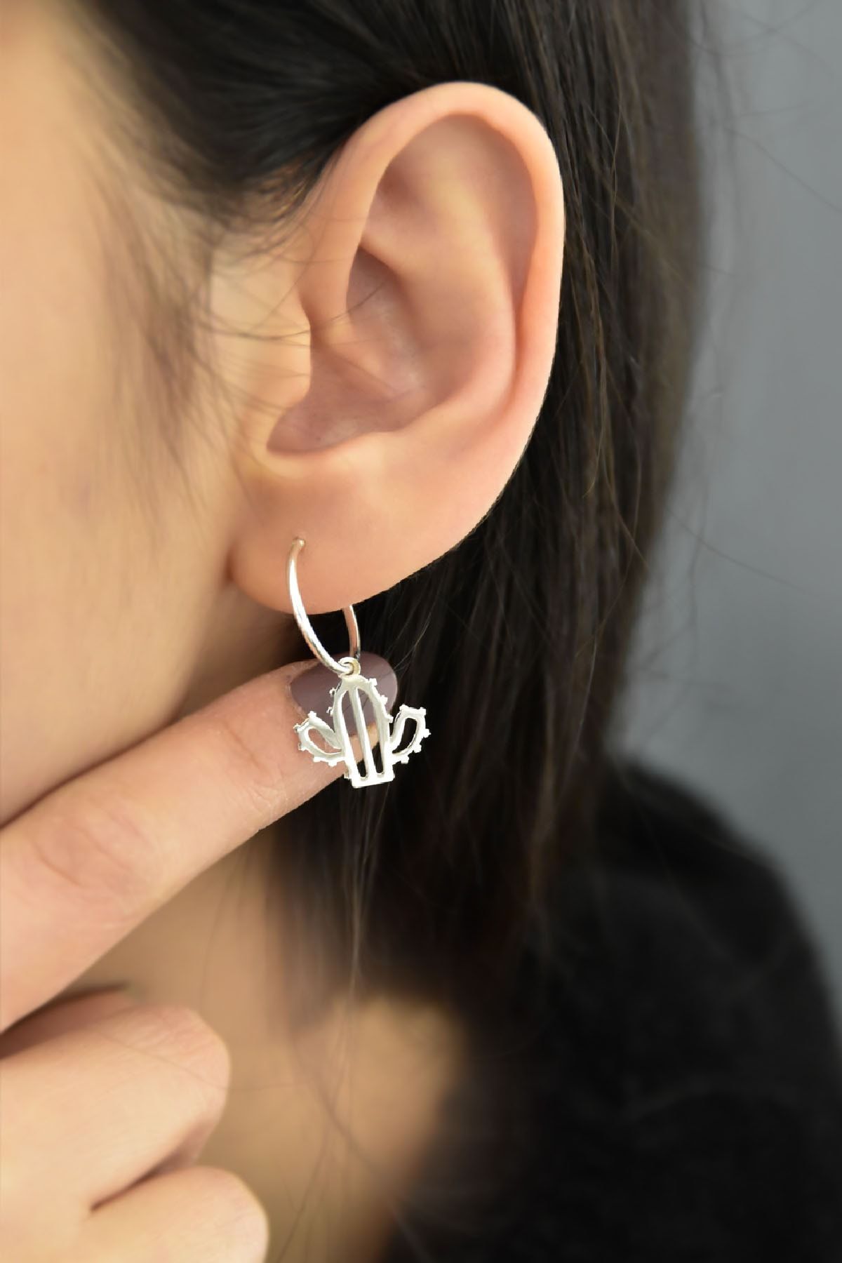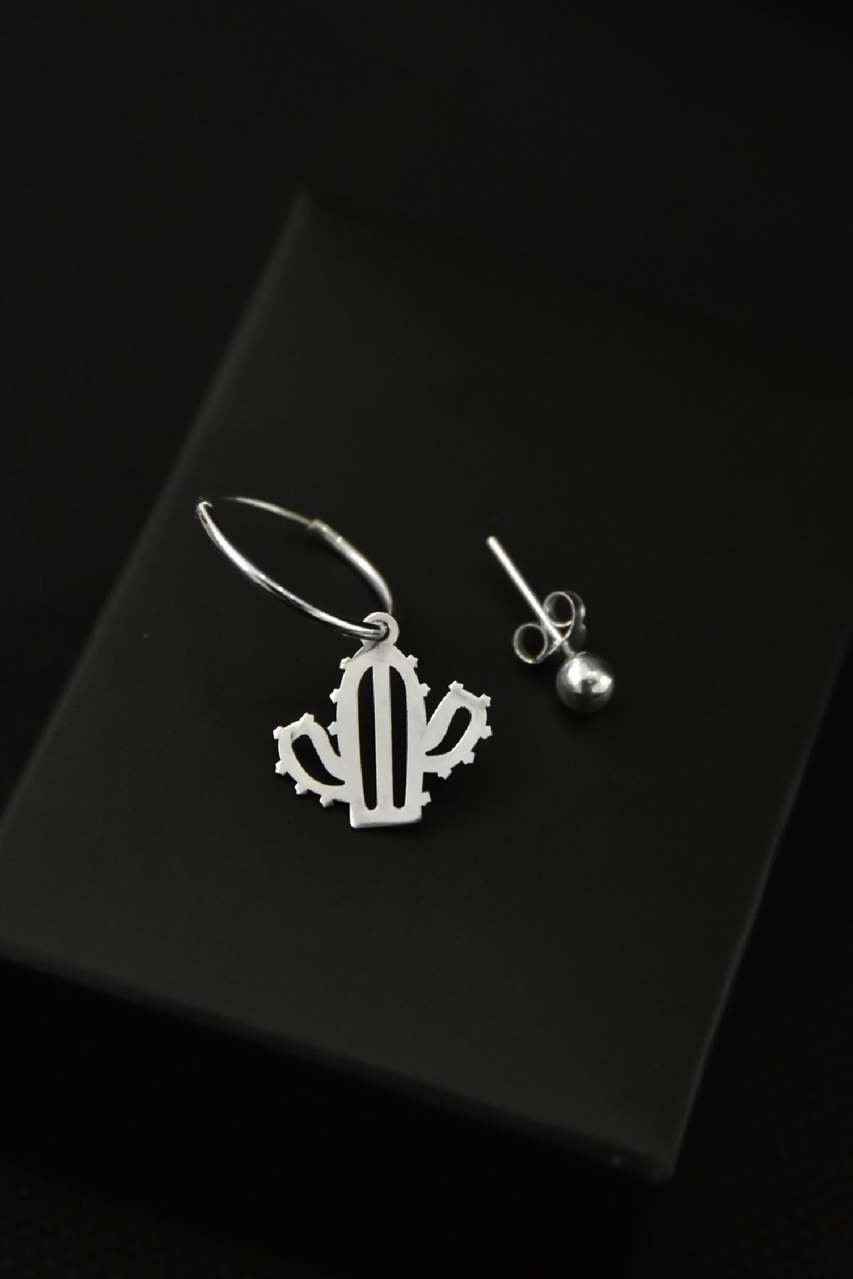 Etiketler925 Ayar Gümüş Rodyum Kaplama Kaktüs Figürlü Halka Ve Top Küpe