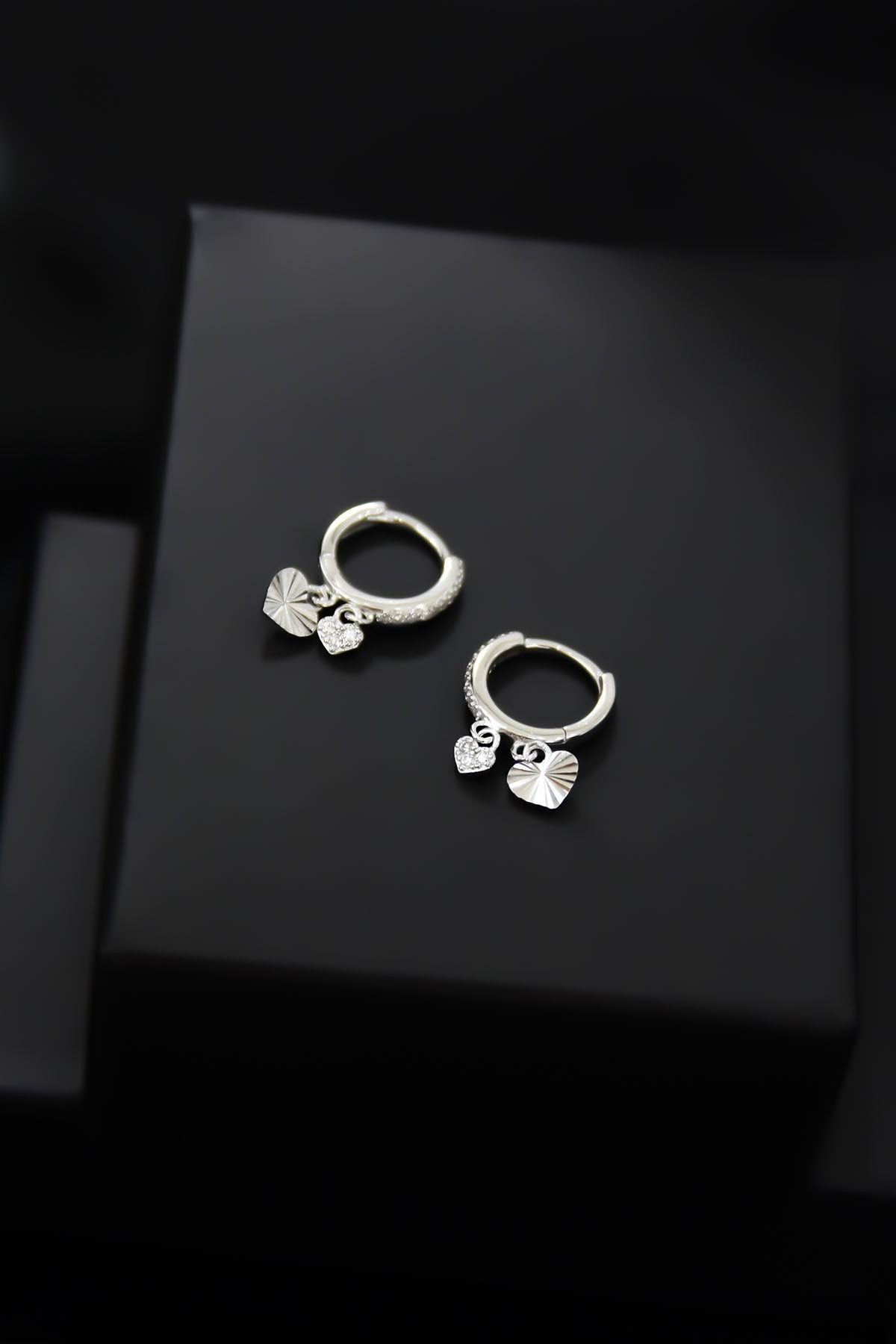 Etiketler925 Ayar Gümüş Rodyum Kaplama Kalp Figürlü Halka Kadın Küpe