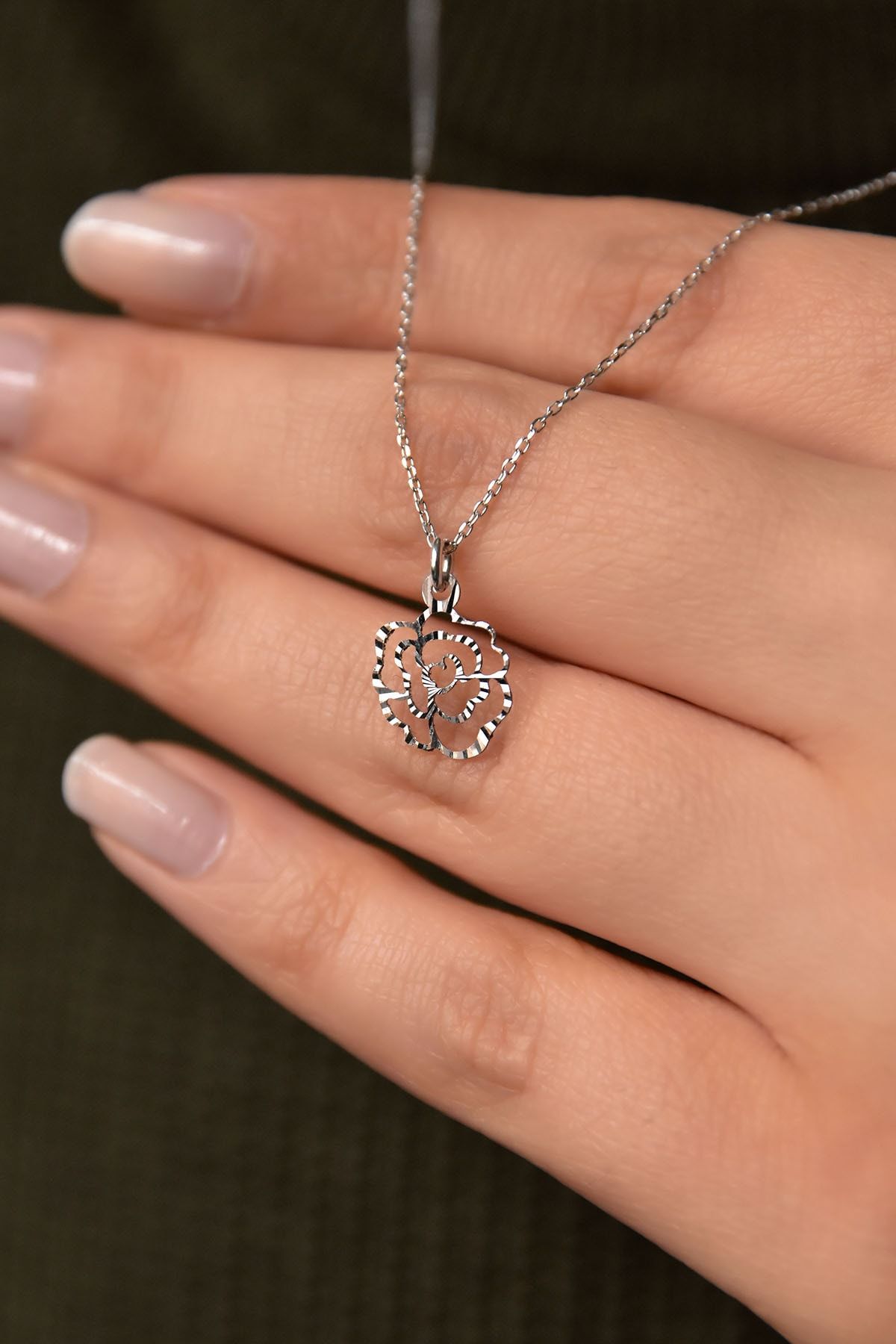 925 Ayar Gümüş Rodyum Kaplama Kristal Kesim Gül Kadın Kolye