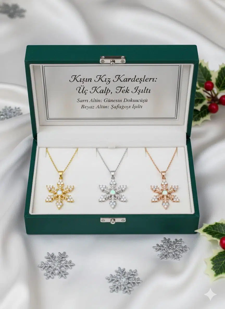 Etiketler925 Ayar Gümüş Rodyum Kaplama Opal Taşlı Kar Tanesi Kolye