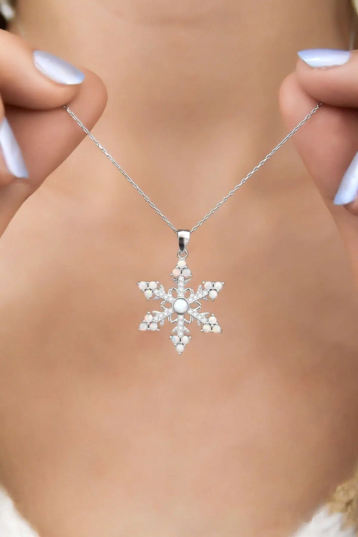 925 Ayar Gümüş Rodyum Kaplama Opal Taşlı Kar Tanesi Kolye