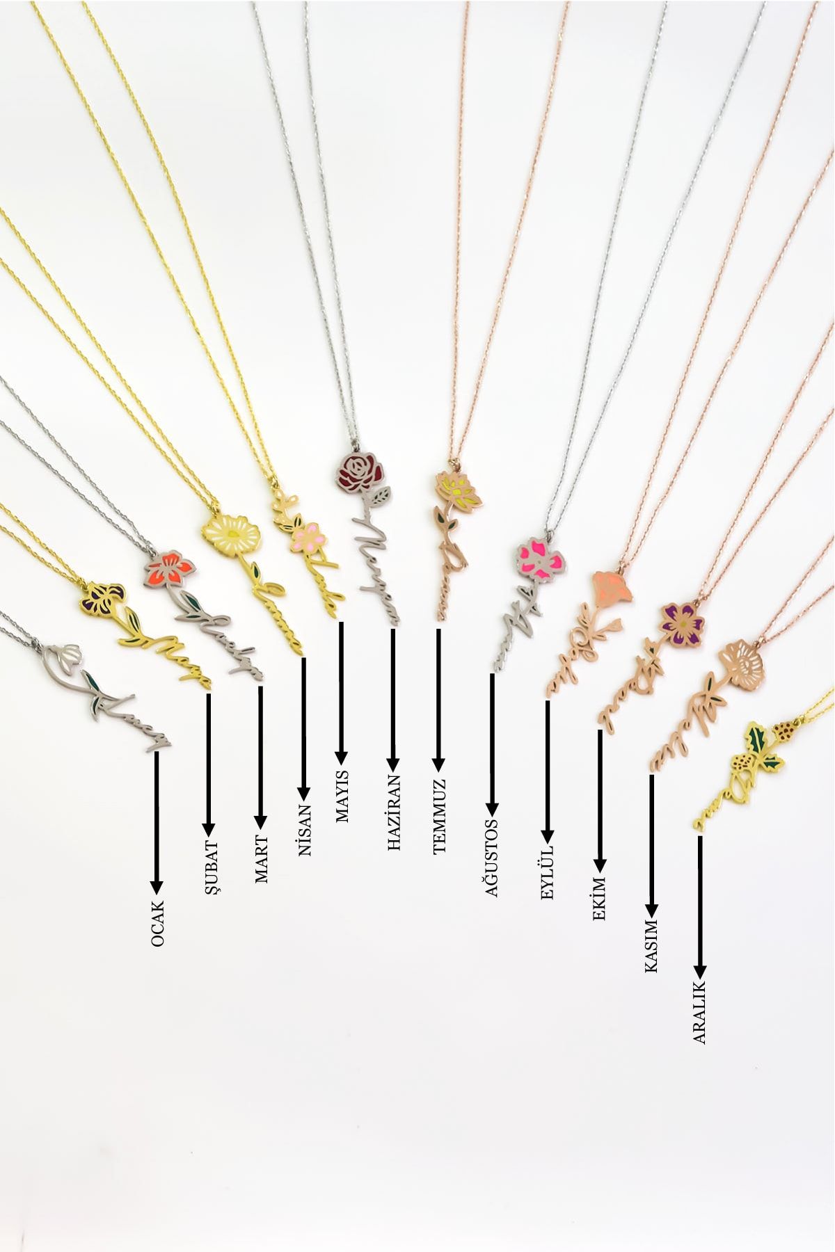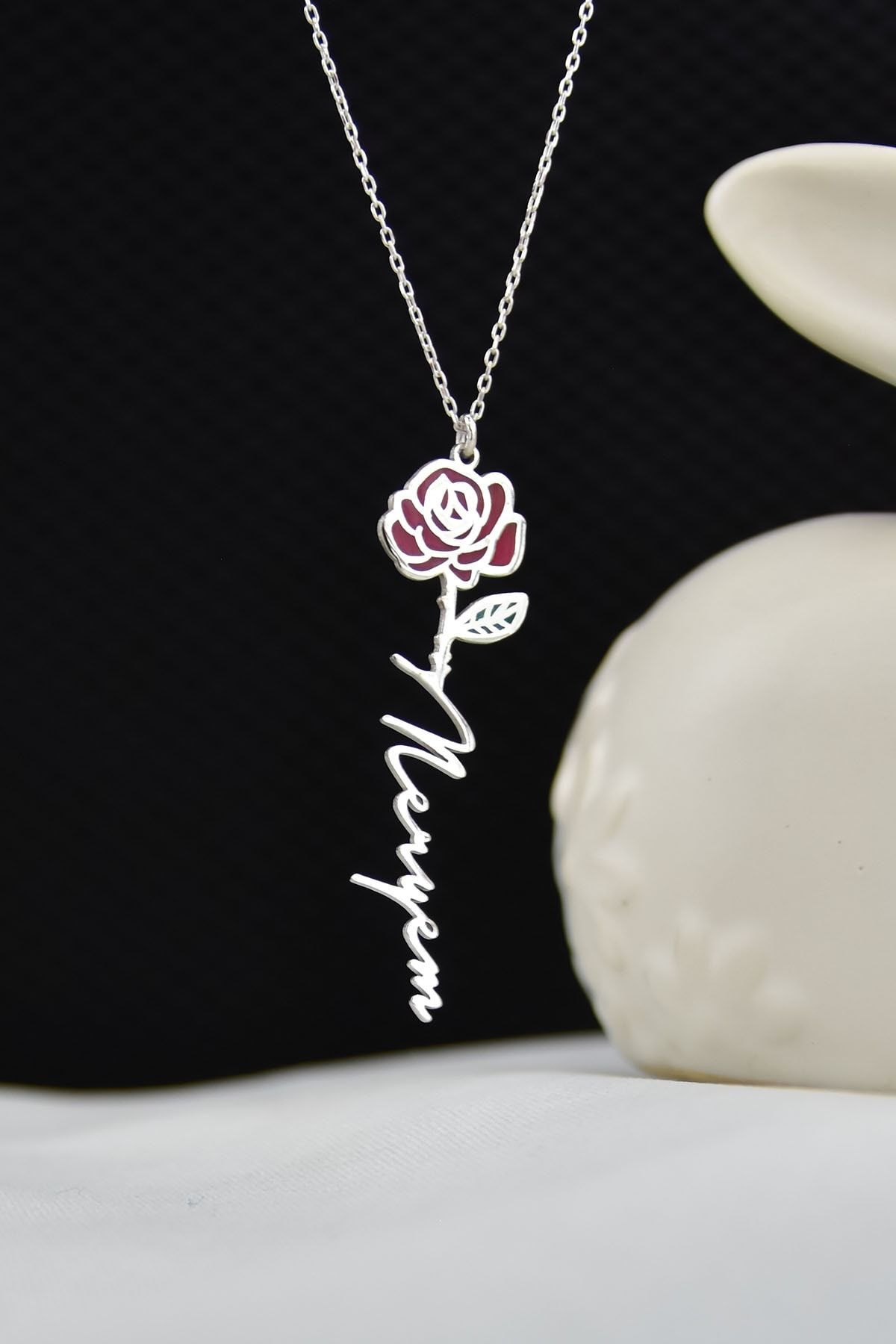 925 Ayar Gümüş Rodyum Kaplama Özel Tasarım Mineli Doğum Haziran Ayı Çiçeği, Isim Kolye