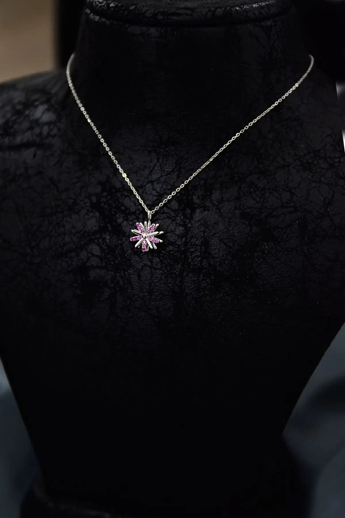 925 Ayar Gümüş Rodyum Kaplama Pembe Zirkon Taşlı Dönen Güneş Kolye