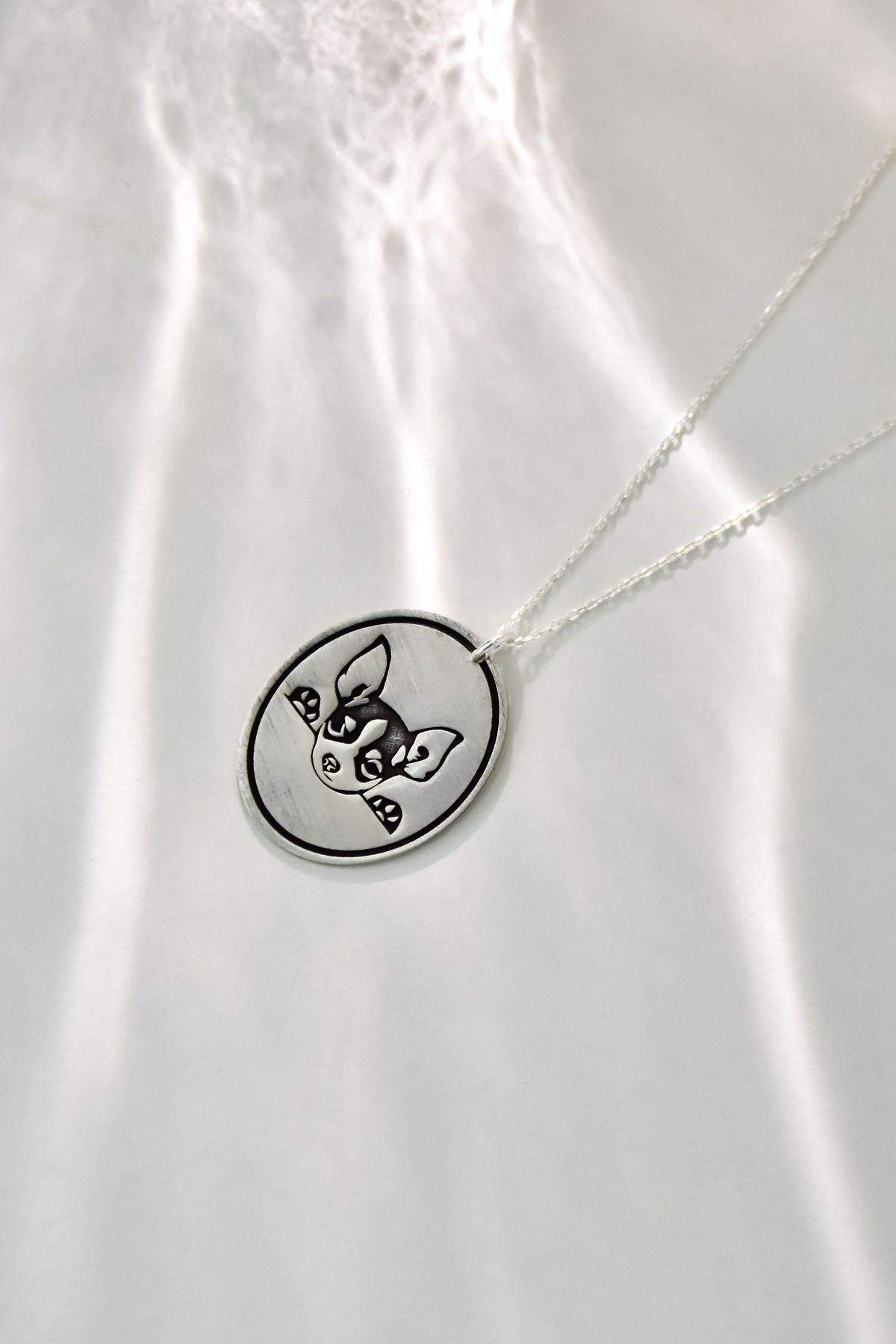 925 Ayar Gümüş Rodyum Kaplama Plaka Köpek Desenli Kolye