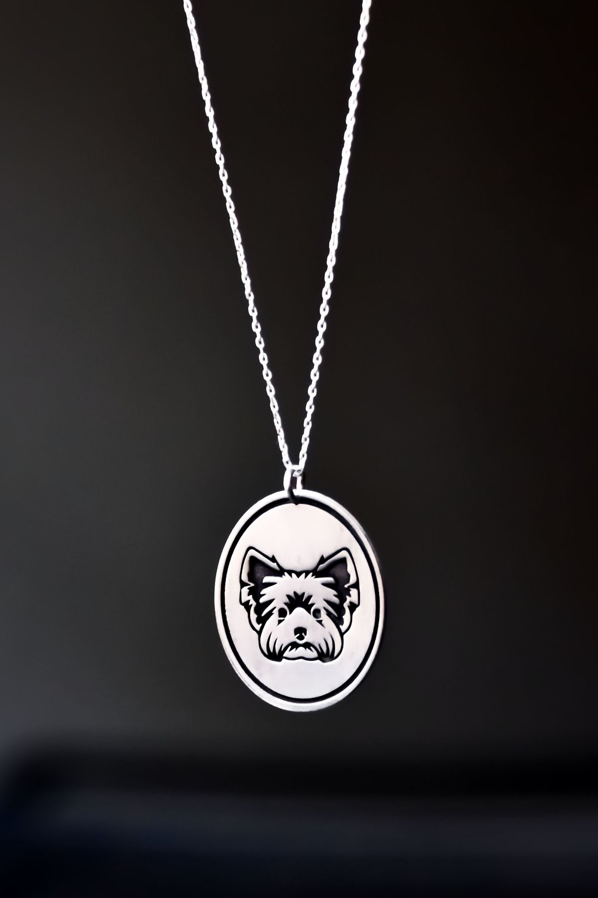Etiketler925 Ayar Gümüş Rodyum Kaplama Plaka Terrier Irkı Köpek Desenli Kolye