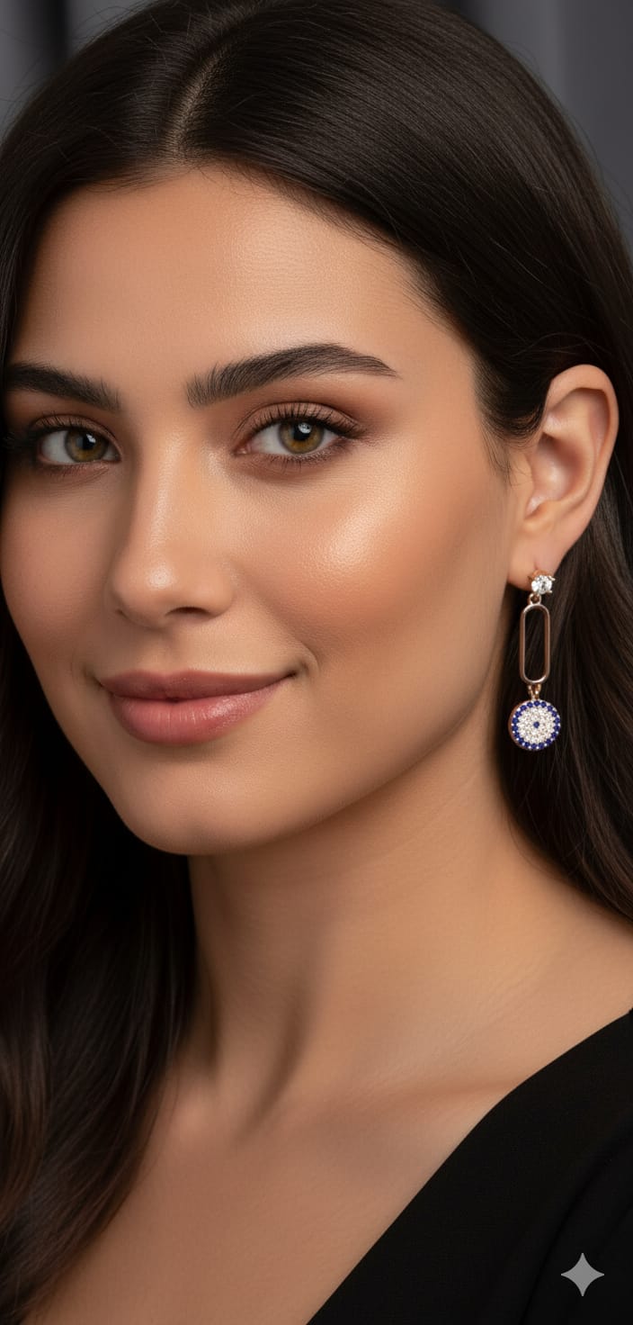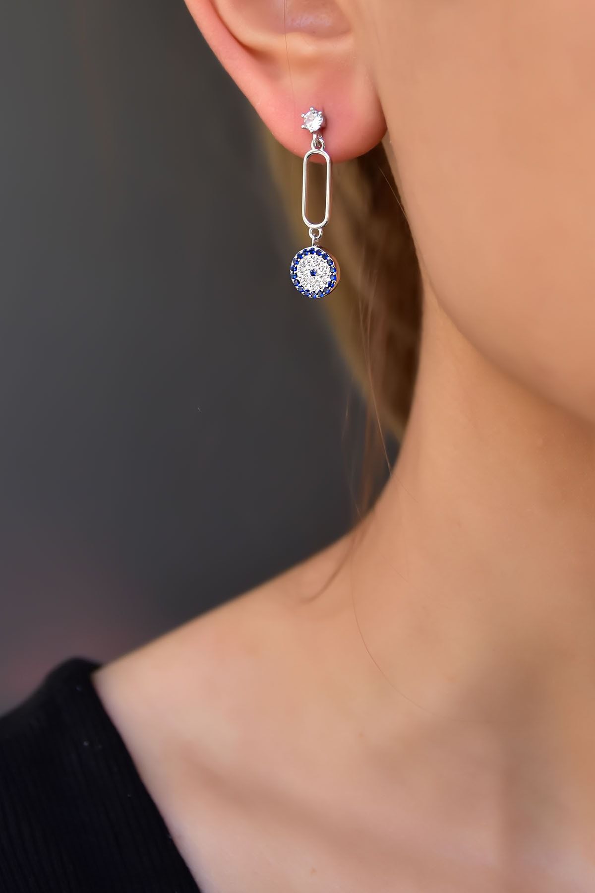 Etiketler925 Ayar Gümüş Rodyum Kaplama Sallantılı Köşesiz Dikdörtgen Tektaş Nazar Küpe