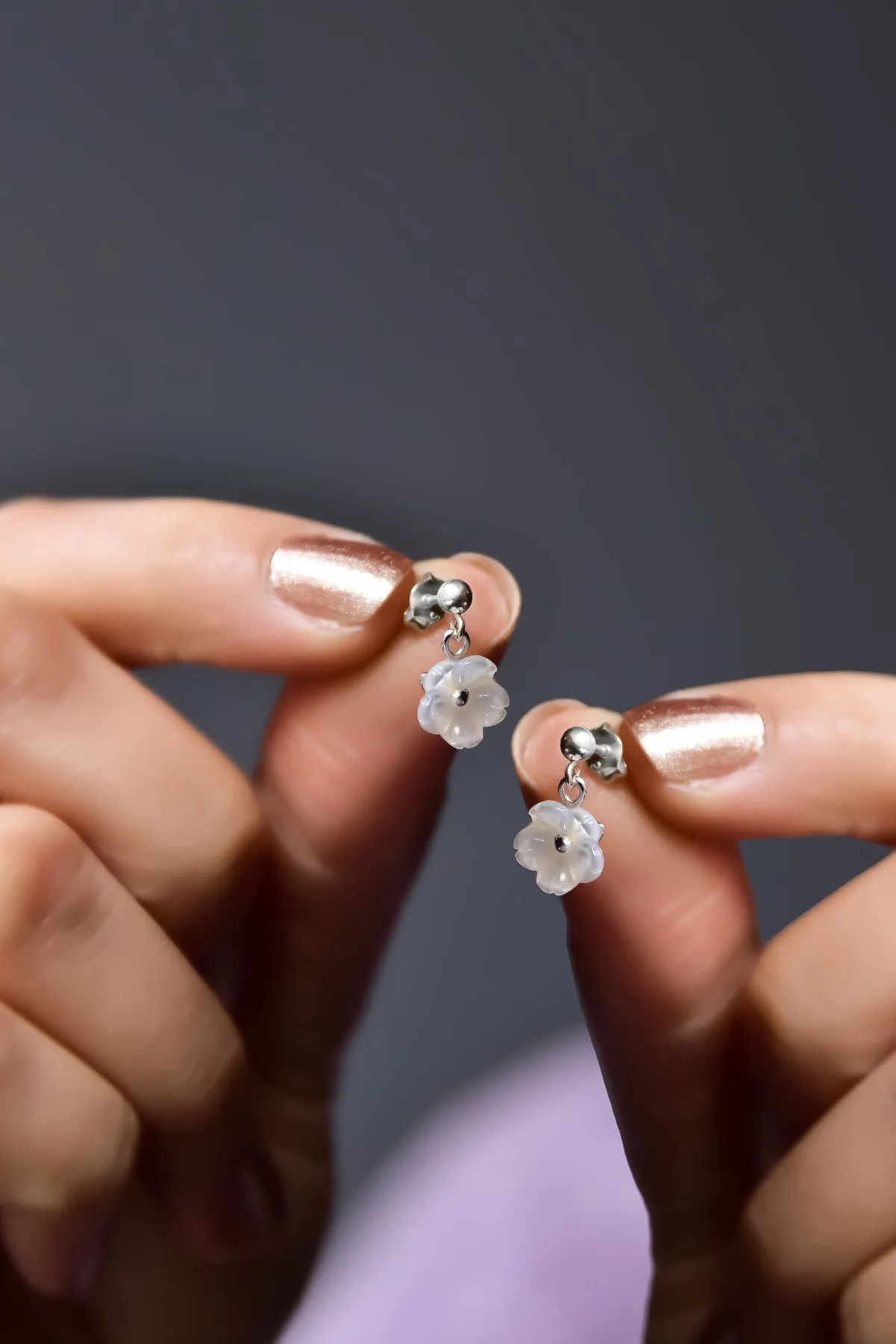 925 Ayar Gümüş Rose Kaplama Pembe Taşlı Frezya Çiçeği Küpe