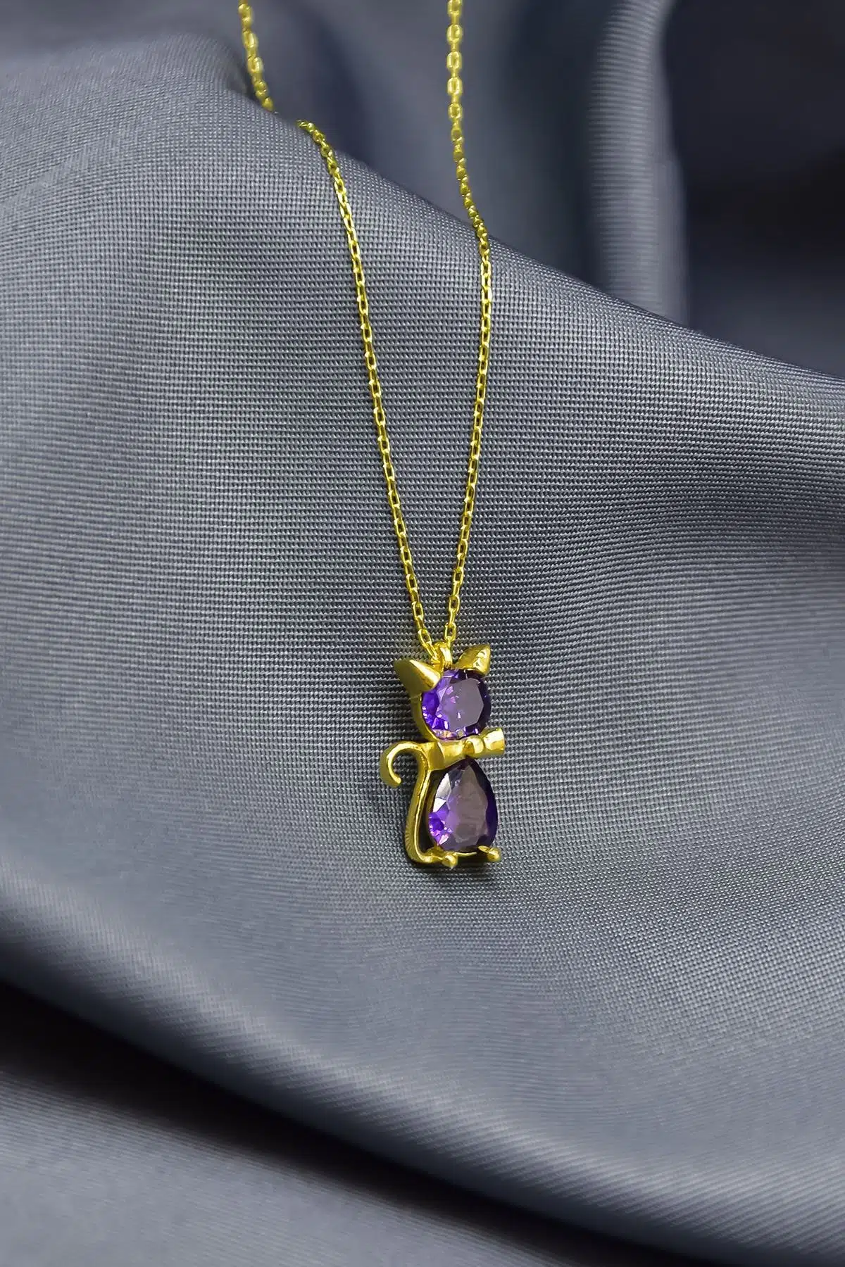 925 Ayar Gümüş Rodyum Kaplama Şubat Ayı Doğum Taşlı Kedi Kolye