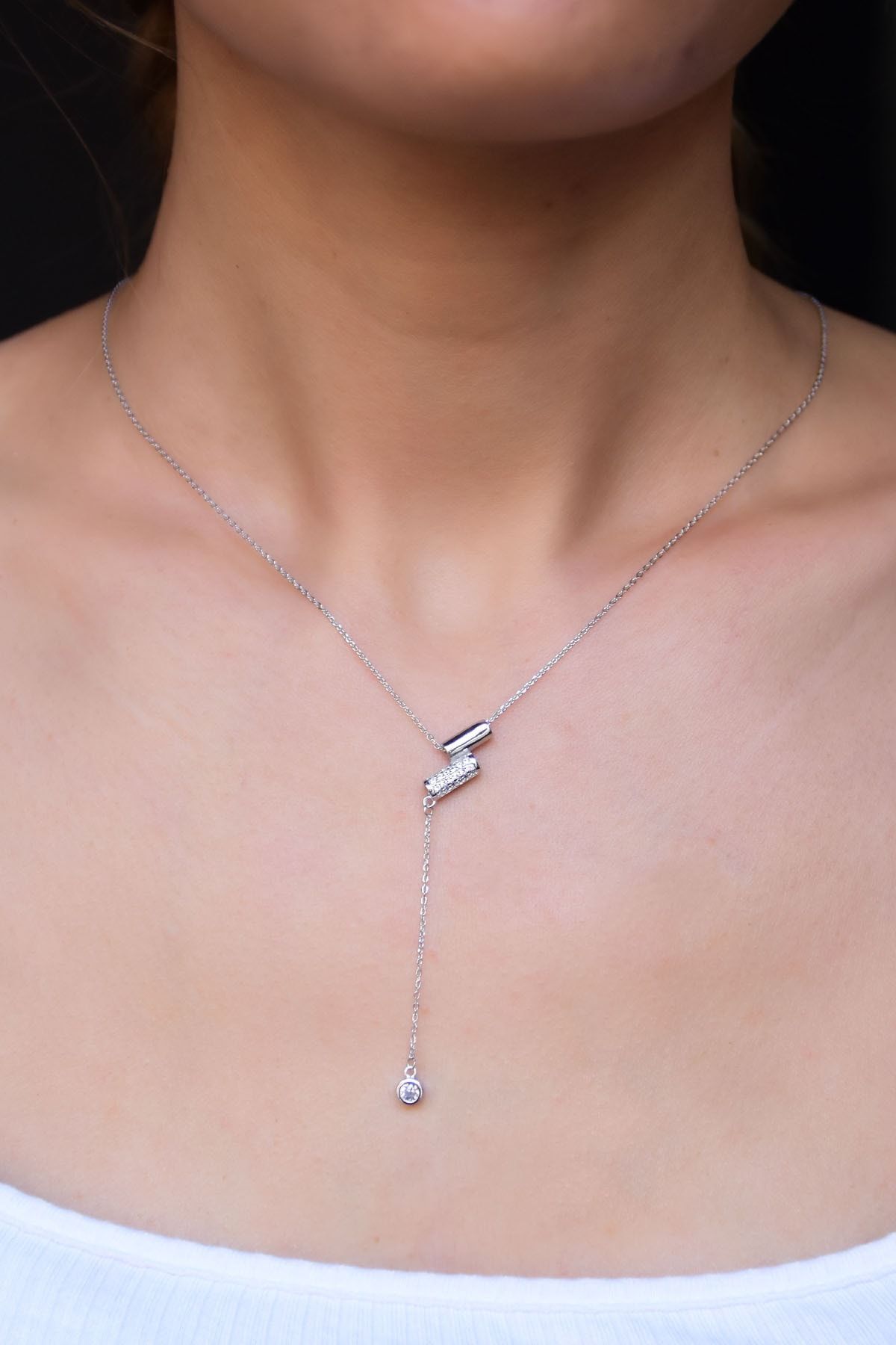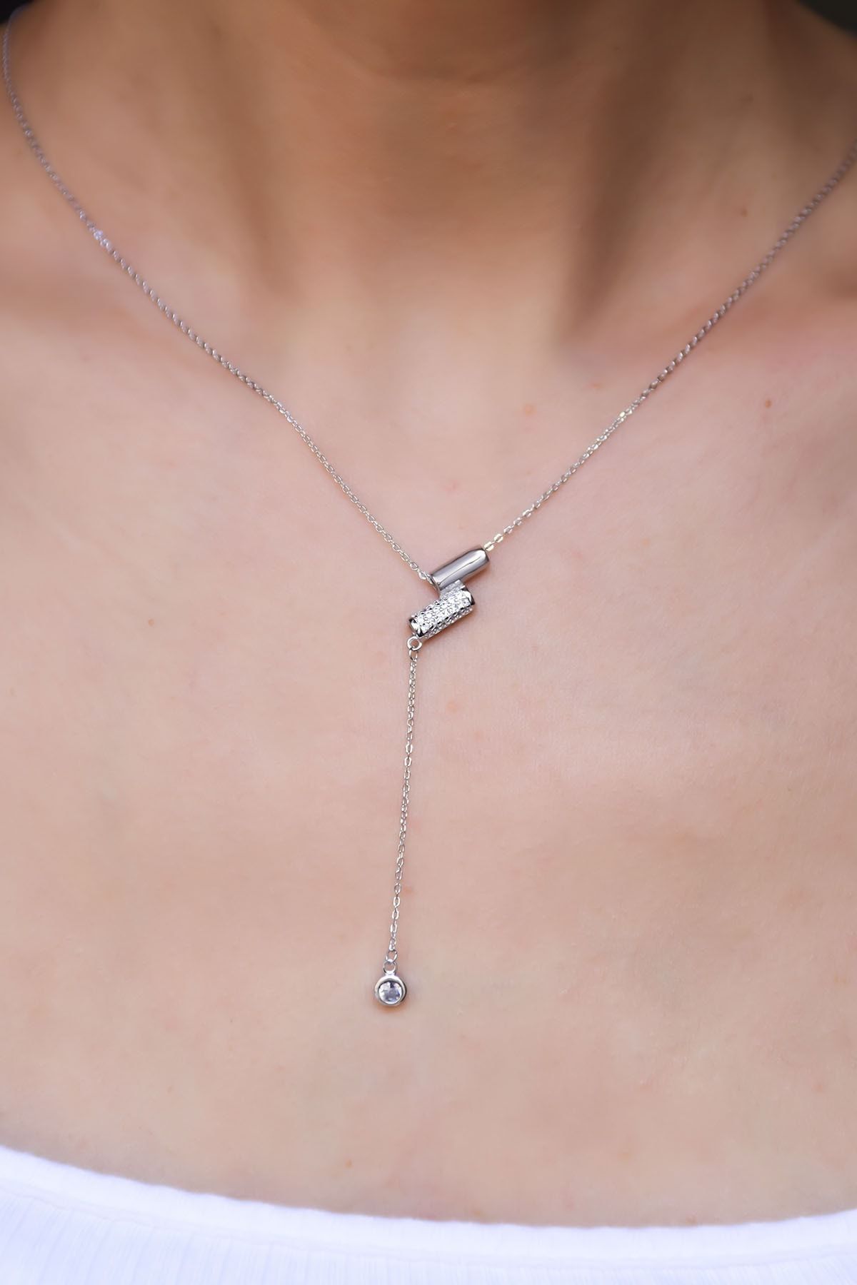 Maden : 925 Ayar Gümüş. Kaplama: Rodyum. Taş: Zirkon. Zincir Uzunluğu: 42 cm. En x Boy: 1,5 x 0,8 cm. Ürün Ağırlığı : 2,38 Gr ( +-). Gümüş ve değerli taşlar nedeniyle belirtilen ortalama ürün ağırlığında ± %5 sapma olabilmektedir. Teslimat: Ürün ahşap hediye kutusunda gönderilecektir. Kullanım: Parfüm,dezenfektan,çamaşır suyu gibi kimyasallardan uzak tutunuz.