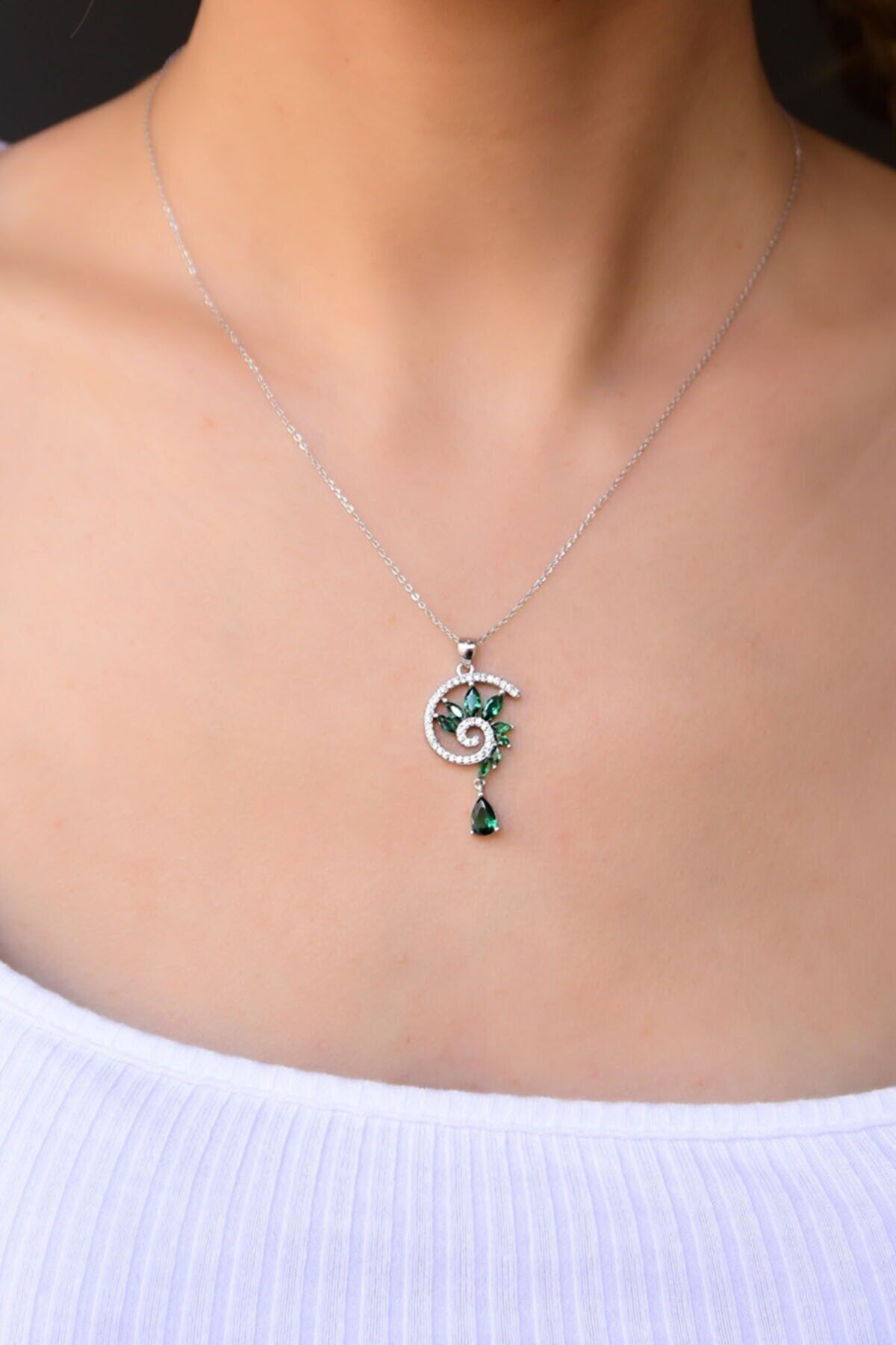 Etiketler925 Ayar Gümüş Rodyum Kaplama Yeşim Taşı Tasarım Kolye