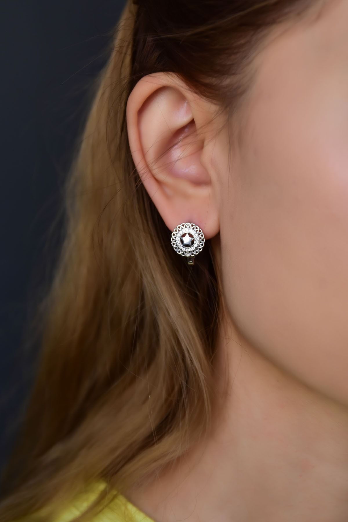Etiketler925 Ayar Gümüş Rodyum Kaplama Yıldız Desenli Klipsli Kadın Küpe