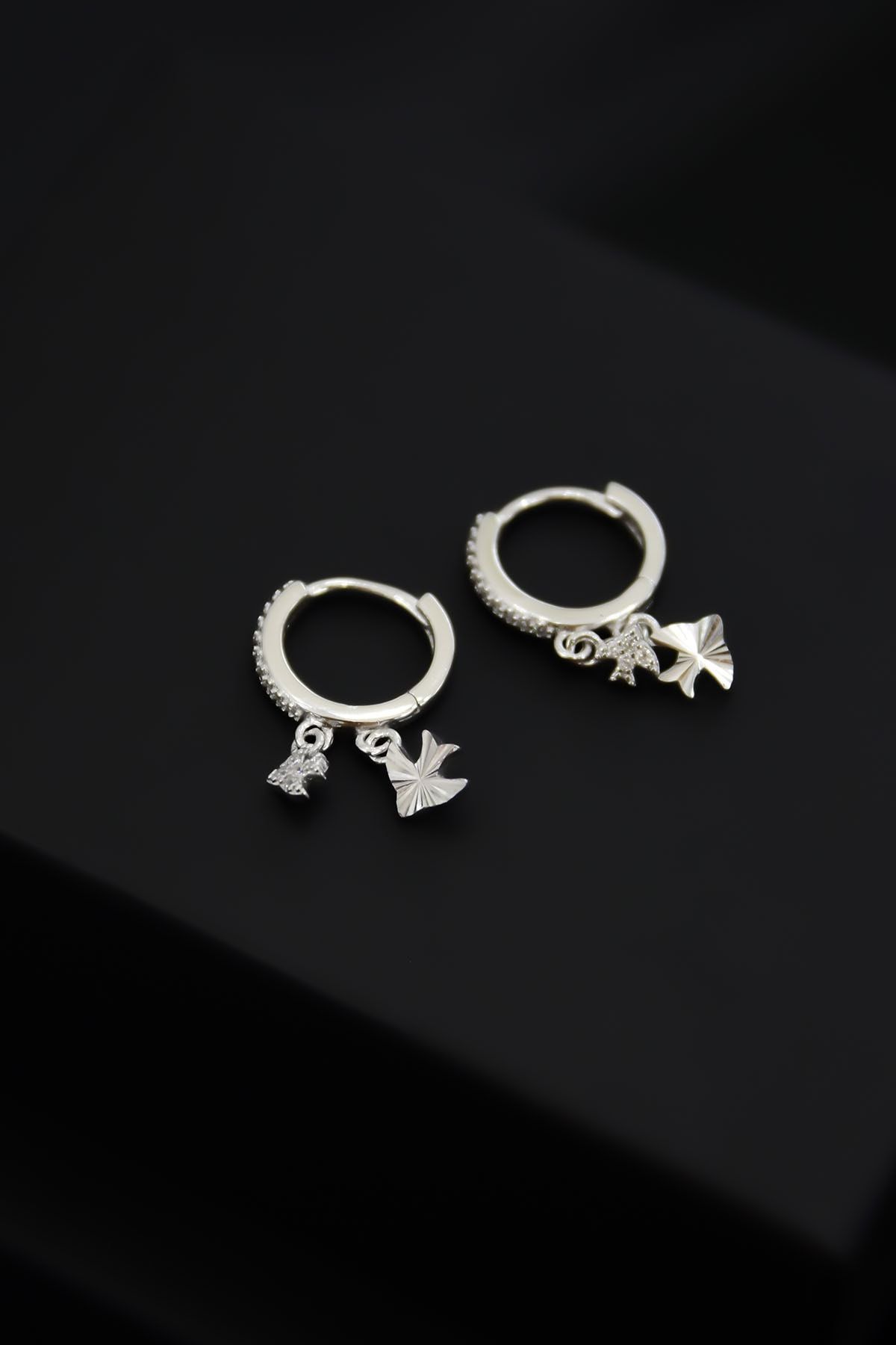 Etiketler925 Ayar Gümüş Rodyum Kaplama Yıldız Figürlü Halka Kadın Küpe