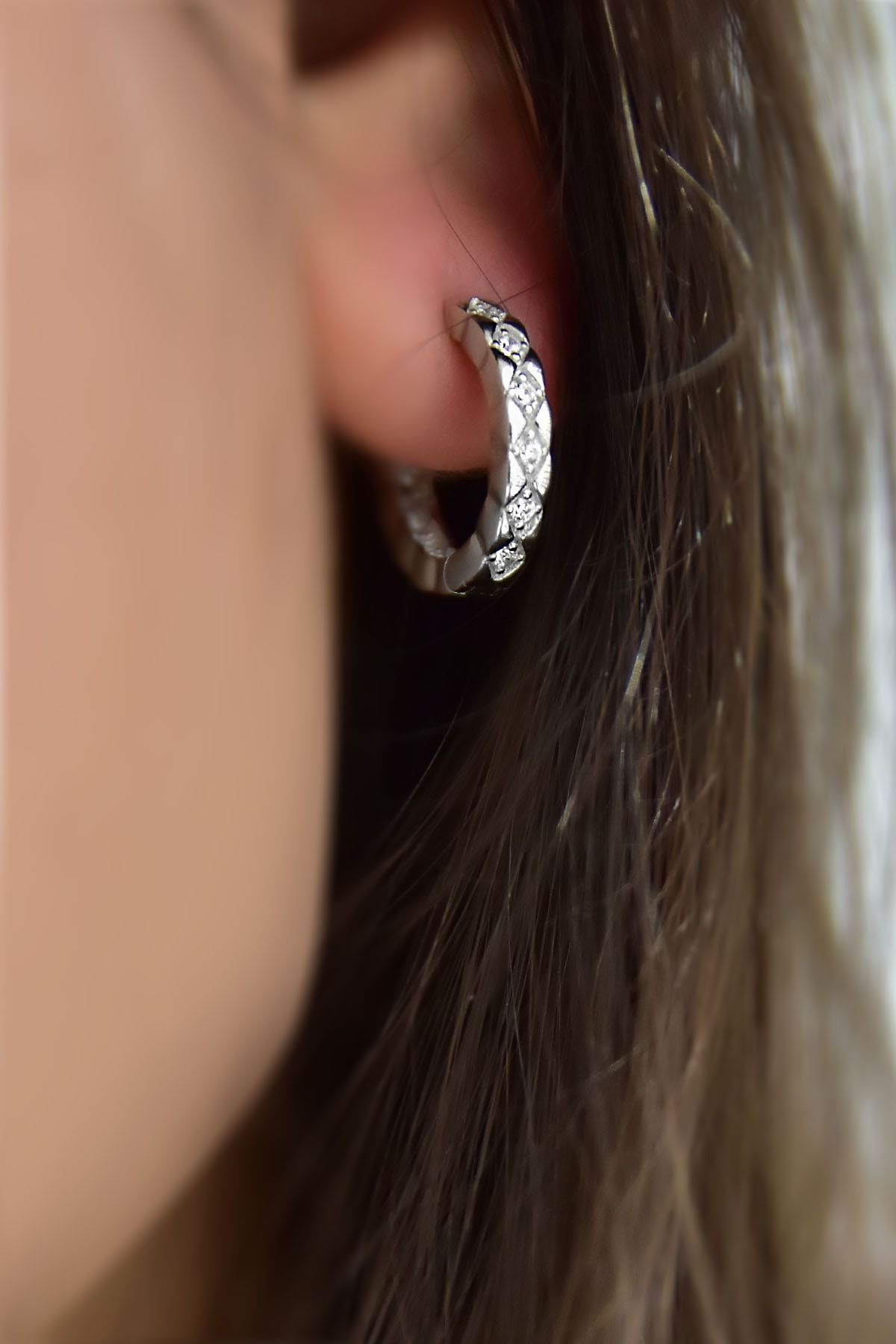 925 Ayar Gümüş Rodyum Kaplama Tasarım Desenli Zirkon Taşlı Halka Küpe