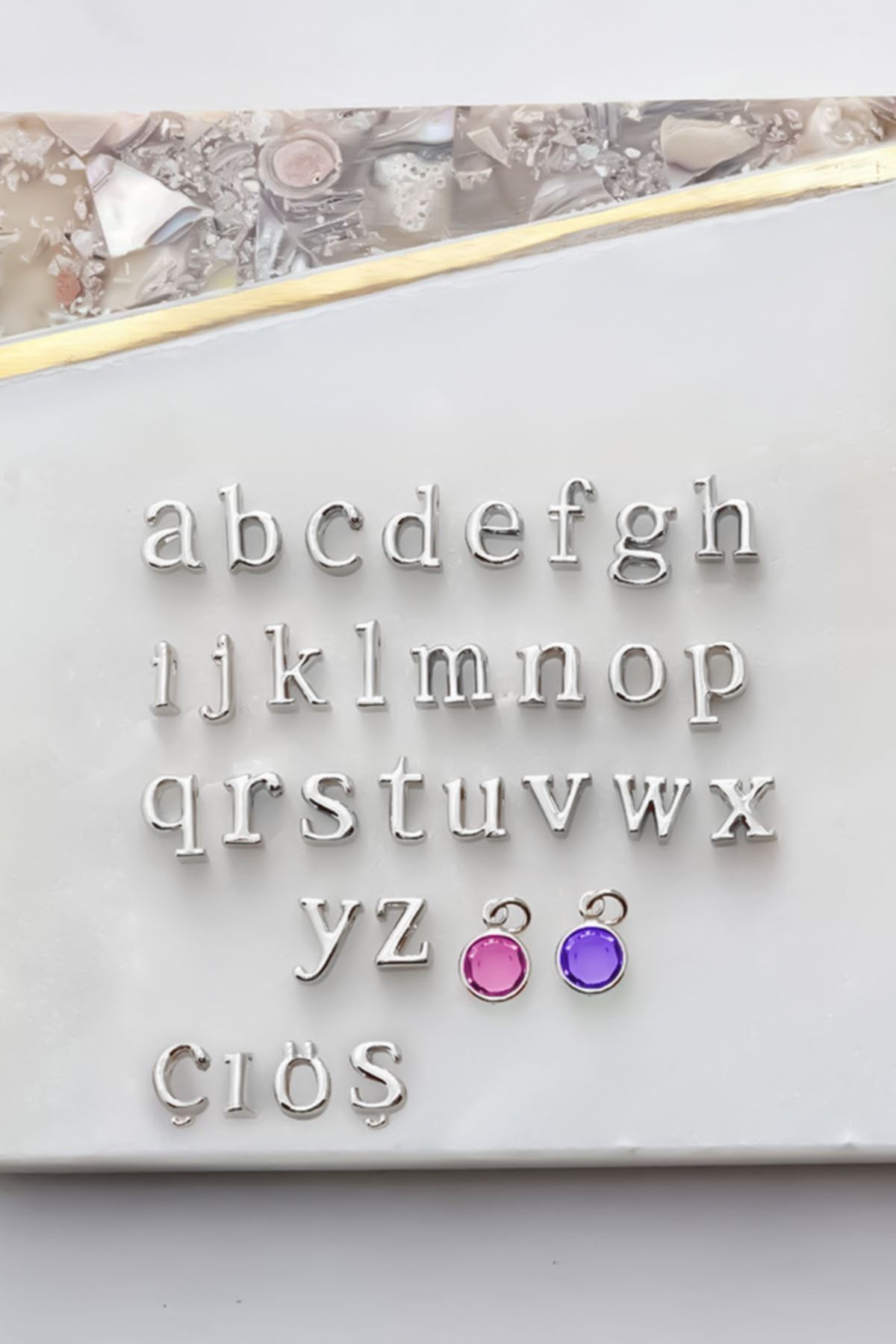 Etiketler925 Ayar Gümüş Rodyum Mini Üç Boyutlu A Harfi Kalp Doğum Taşlı Kolye