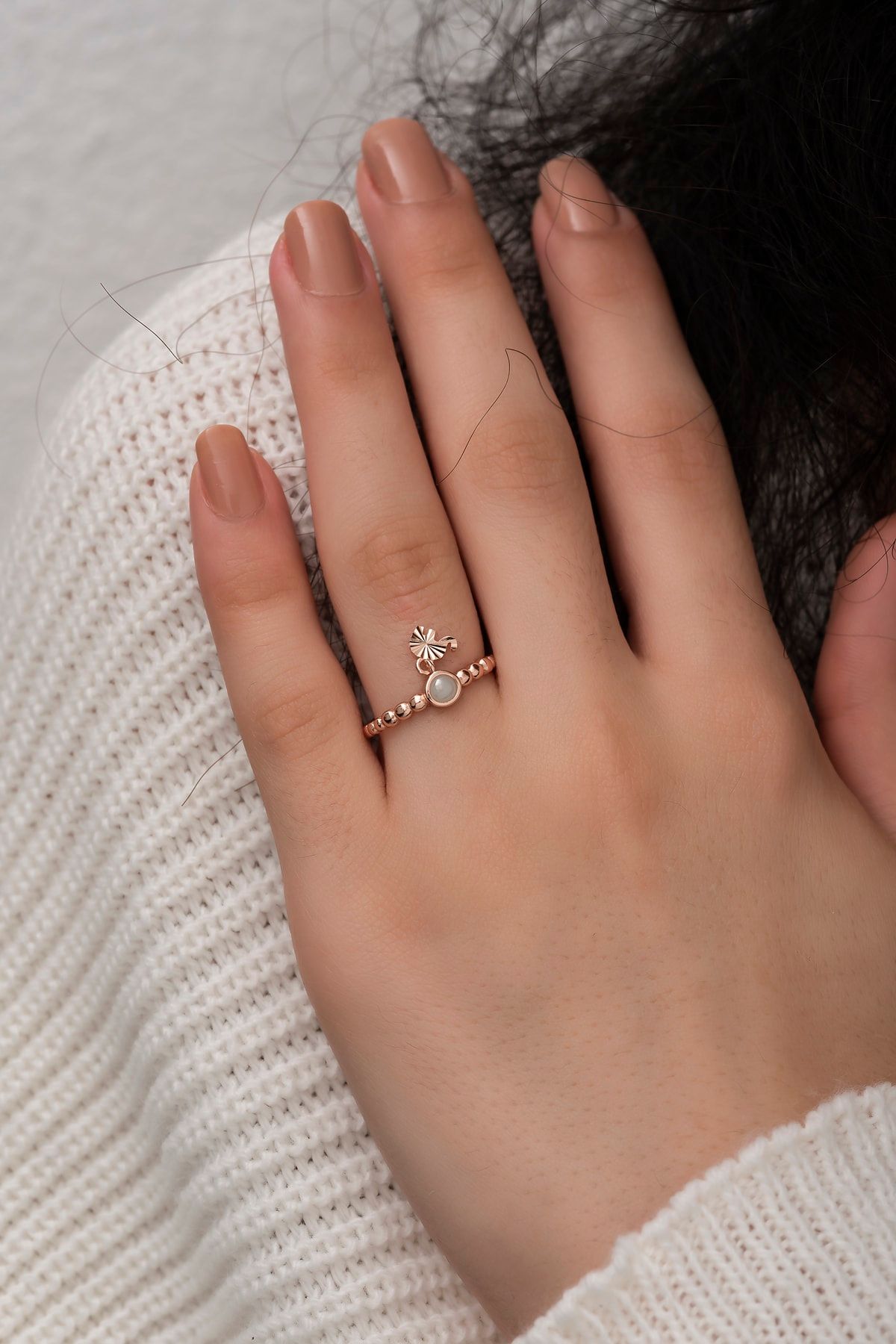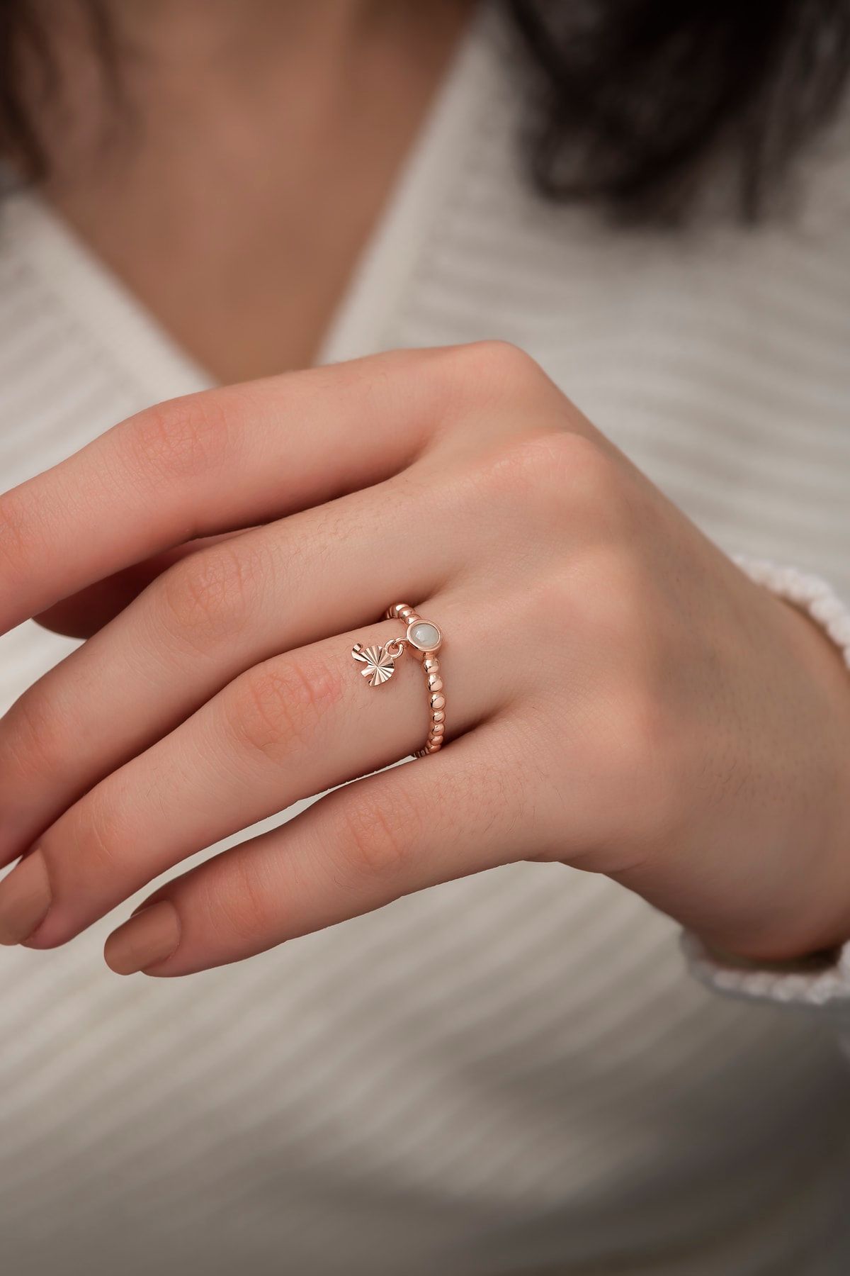 Maden : 925 Ayar Gümüş.Yüzük Ölçüsü: Ayarlanabilir.Taş : Ay Taşı.Renk : Rose Altın.Ürün ağırlığı : 1.60 Gr ( +-).Teslimat: Ürün ahşap hediye kutusunda gönderilecektir.Kullanım: Parfüm,dezenfektan,çamaşır suyu gibi kimyasallardan uzak tutunuz.