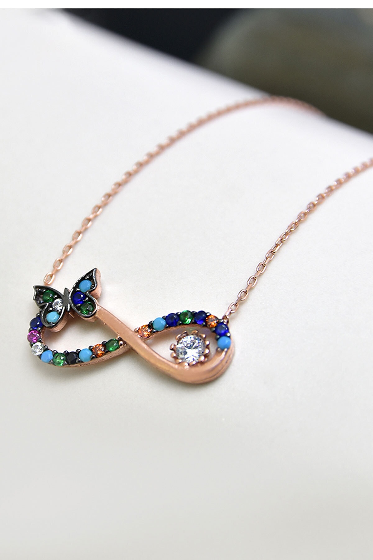 Etiketler925 Ayar Gümüş Rose Altın Kaplama Renkli Taşlı Kelebek Kolye