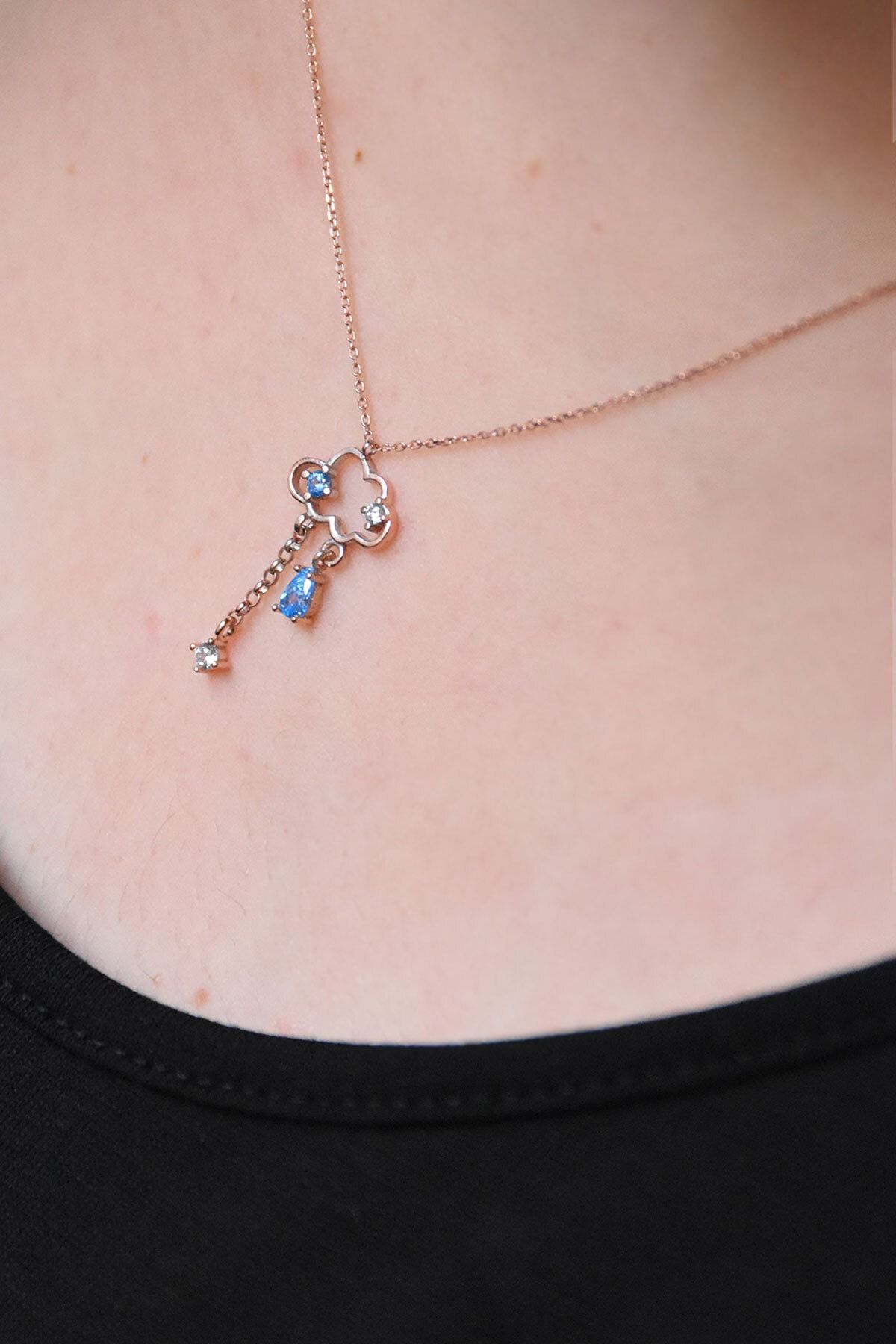 Maden Ayar: 925 Ayar Gümüş.Maden Kaplama: Rose Altın.Zincir Uzunluk: 42 cm.Taş: Zirkon.Teslimat: Ürün ahşap hediye kutusunda gönderilecektir.''Gümüş ürünlerin yapısı gereği kararmalar meydana gelebilir daha uzun ömürlü olması için;Parfüm gibi kozmetik ürünlere direkt temas etmediği sürece ürün ömrü daha uzun olacaktır.''