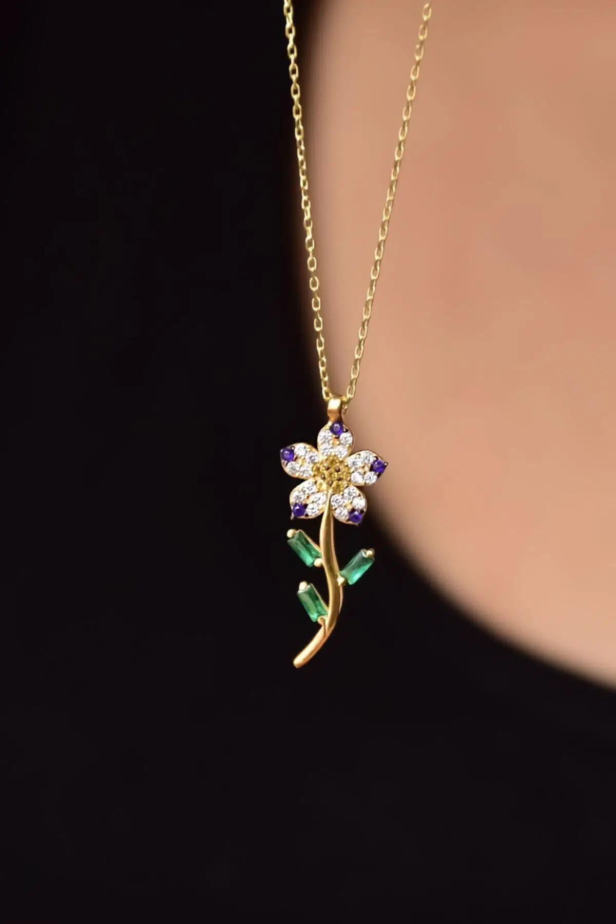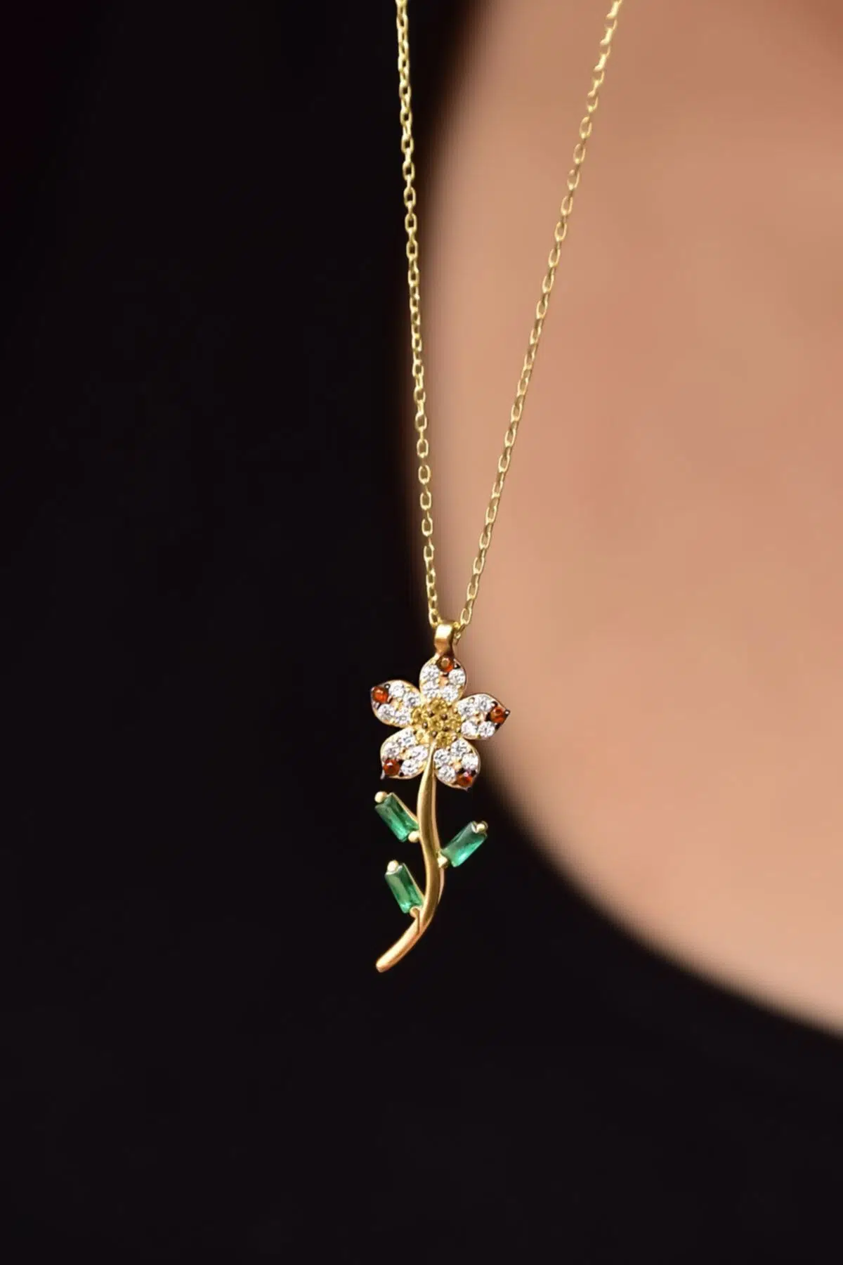 Maden 925 Ayar Gümüş.rose.gold.rodaj.12 ay doğum Taşlı Papatya doğum çiçeği kolyesi: . Gold. Figür En*Boy: 1*2,2 cm. Kolye Uzunluğu: 43 cm. Kolye Ağırlık: 3,40 Gümüş ve değerli taşlar nedeniyle belirtilen ortalama ürün ağırlığında ± %5 sapma olabilmektedir. Teslimat: Ürün ahşap hediye kutusunda gönderilecektir. Kullanım: Parfüm, dezenfektan, çamaşır suyu gibi kimyasallardan uzak tutunuz.