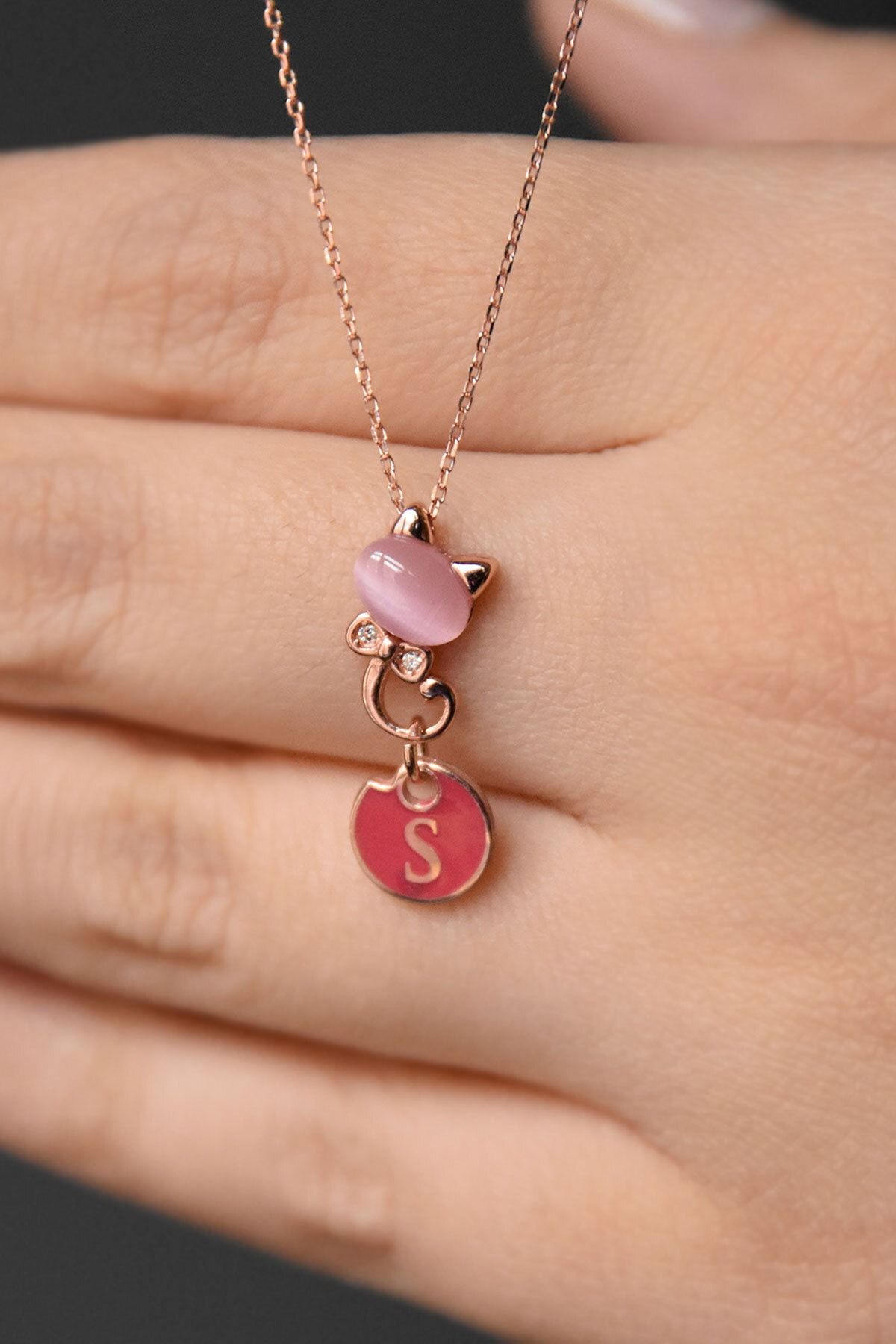 Maden Ayar: 925 Ayar Gümüş. Maden Kaplama: Rose Altın.Zincir Uzunluğu: 42 cm.Ürün Ağırlığı: 1,50 Gr. ( +-). En- Boy:1 x 2 cm.Taş: Ay Taşı.Teslimat: Ürün ahşap hediye kutusunda gönderilecektir.''Gümüş ürünlerin yapısı gereği kararmalar meydana gelebilir daha uzun ömürlü olması için;Parfüm gibi kozmetik ürünlere direkt temas etmediği sürece ürün ömrü daha uzun olacaktır.''
