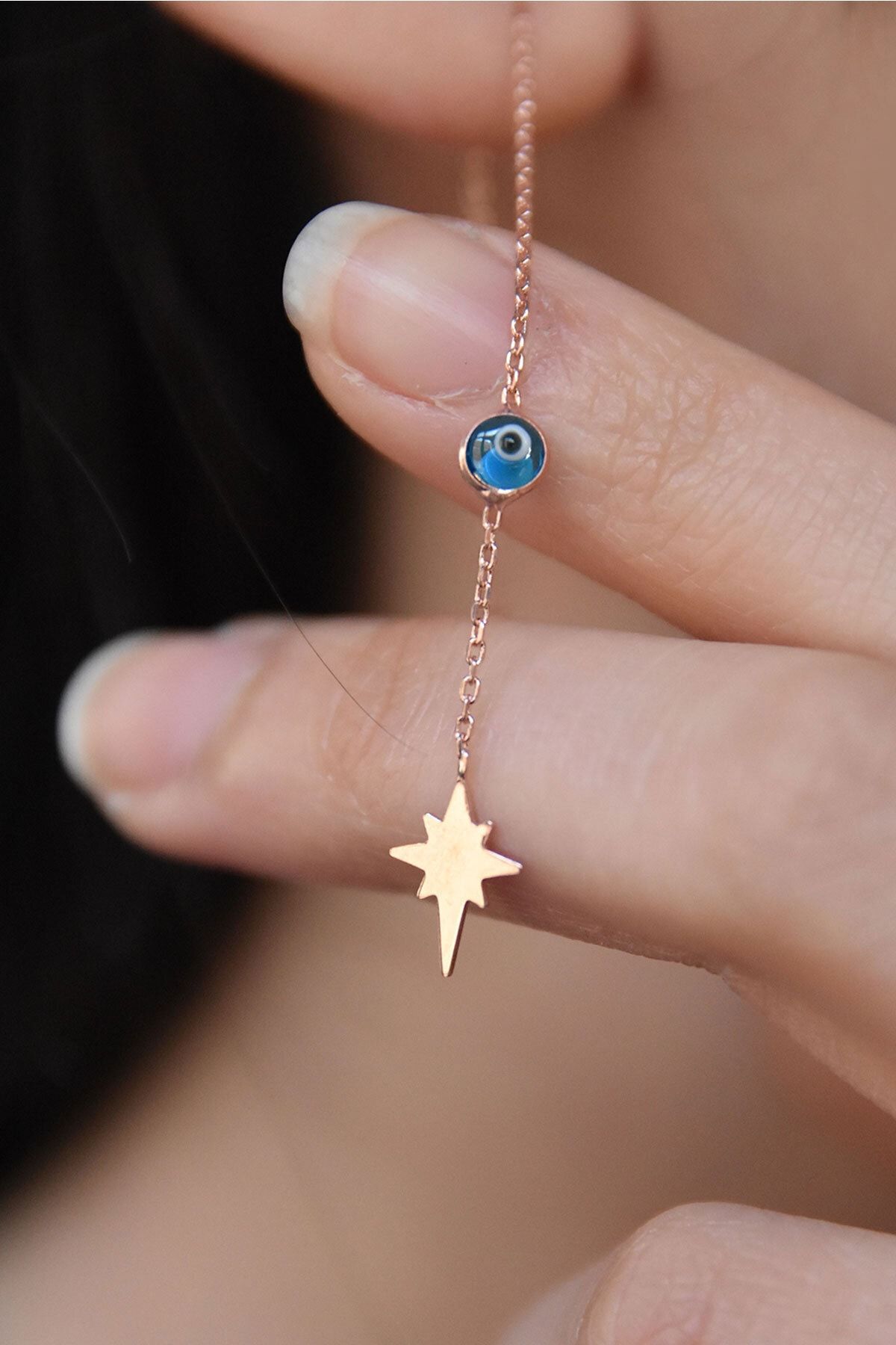 Etiketler925 Ayar Gümüş Rose Kaplama Cam Göz Kutup Yıldızı Zincir Küpe Tekli