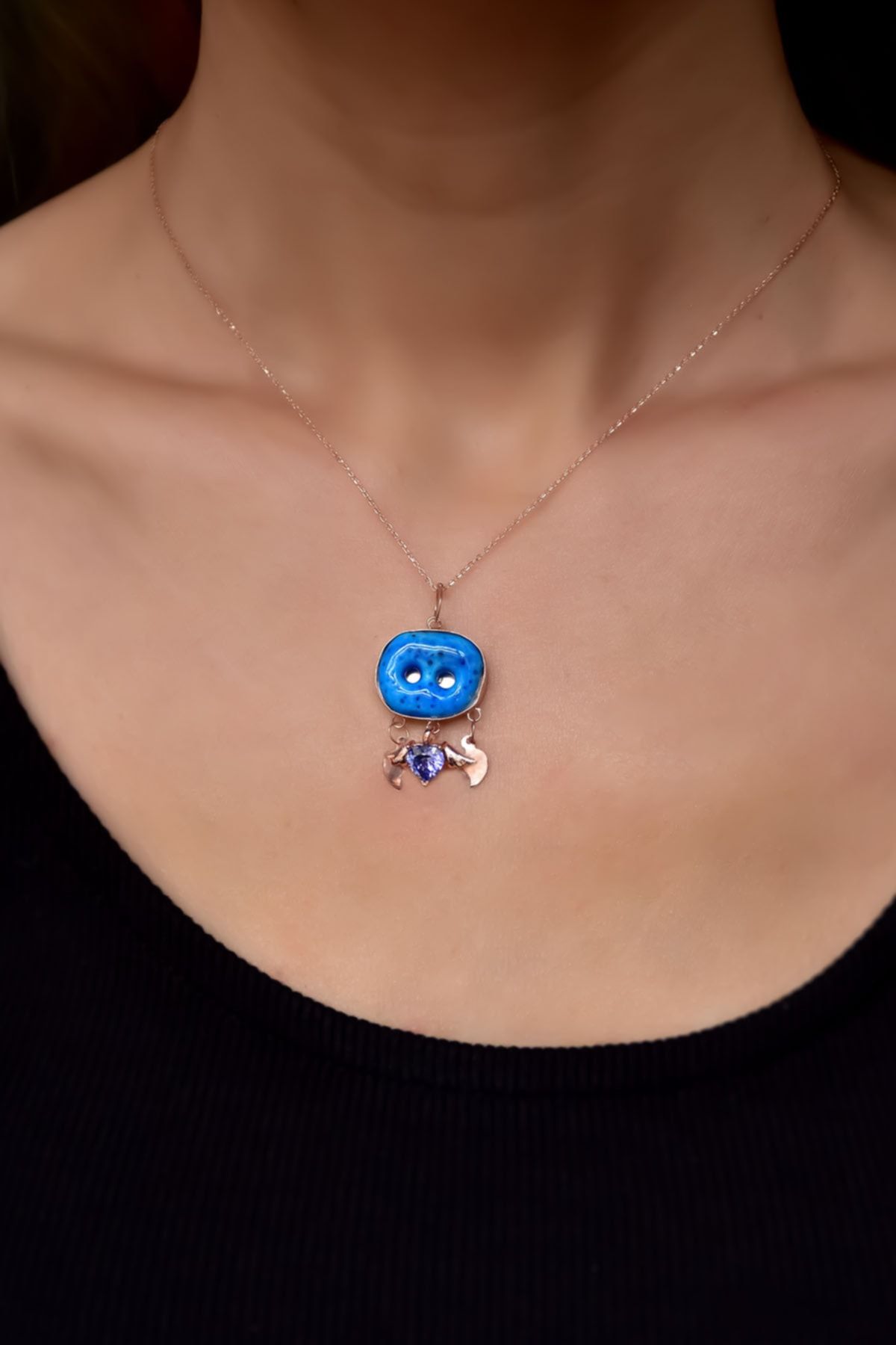 Maden : 925 Ayar Gümüş. Kaplama: Rose . En*Boy:1,7*1,8 cm. Kolye Uzunluğu: 42 cm. Kolye Ağırlığı : 3,44 Gr ( +-) Gümüş ve değerli taşlar nedeniyle belirtilen ortalama ürün ağırlığında ± %5 sapma olabilmektedir. Teslimat: Ürün ahşap hediye kutusunda gönderilecektir. Kullanım: Parfüm, dezenfektan, çamaşır suyu gibi kimyasallardan uzak tutunuz.