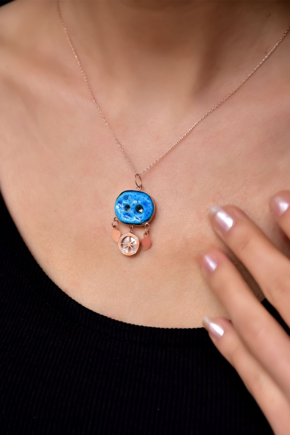 Maden : 925 Ayar Gümüş. Kaplama: Rose . En*Boy:1,7*1,8 cm. Kolye Uzunluğu: 42 cm. Kolye Ağırlığı : 3,5 Gr ( +-) Gümüş ve değerli taşlar nedeniyle belirtilen ortalama ürün ağırlığında ± %5 sapma olabilmektedir. Teslimat: Ürün ahşap hediye kutusunda gönderilecektir. Kullanım: Parfüm, dezenfektan, çamaşır suyu gibi kimyasallardan uzak tutunuz.