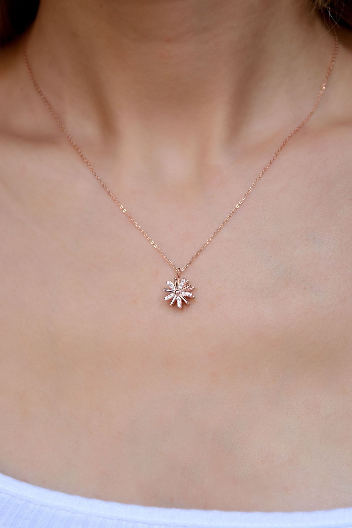Maden : 925 Ayar Gümüş. Ürün dönmektedir. Kaplama: Rose Altın. Taş: Zirkon. Figür: 1,0 cm. Zincir Uzunluğu: 42 cm. Ürün Ağırlığı : 2,38 Gr ( +-). Gümüş ve değerli taşlar nedeniyle belirtilen ortalama ürün ağırlığında ± %5 sapma olabilmektedir. Teslimat: Ürün ahşap hediye kutusunda gönderilecektir. Kullanım: Parfüm,dezenfektan,çamaşır suyu gibi kimyasallardan uzak tutunuz.
