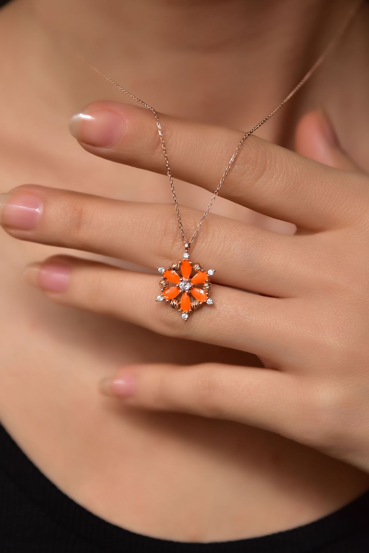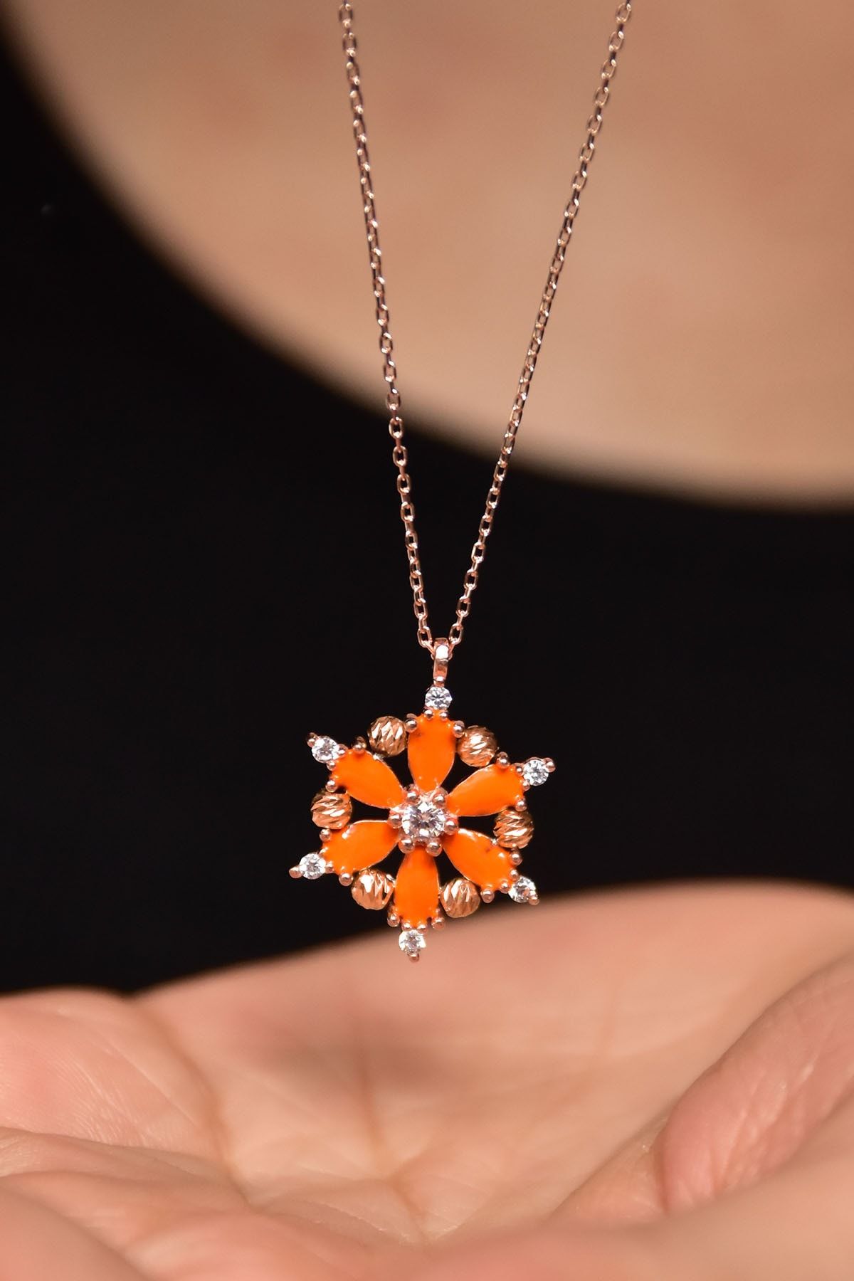 Etiketler925 Ayar Gümüş Rose Kaplama Dorika Toplu Mineli Kamelya Çiçeği Kolye