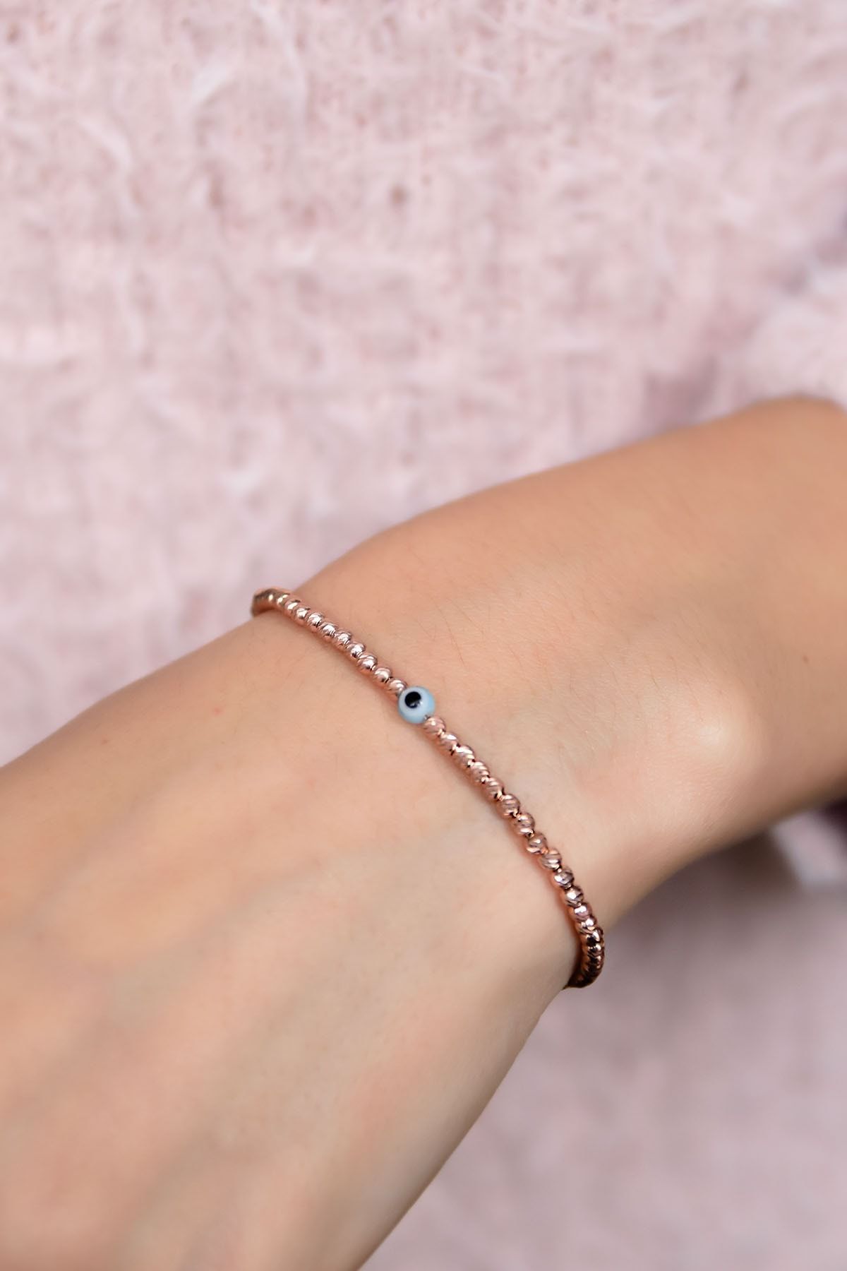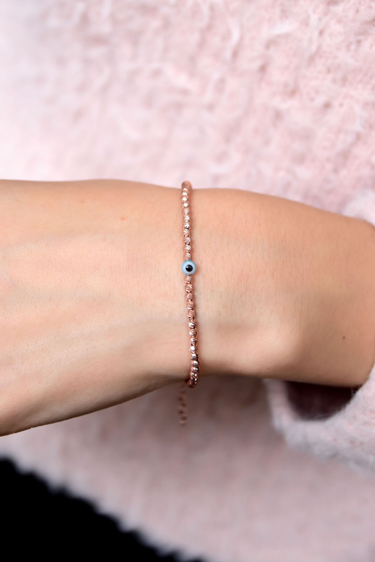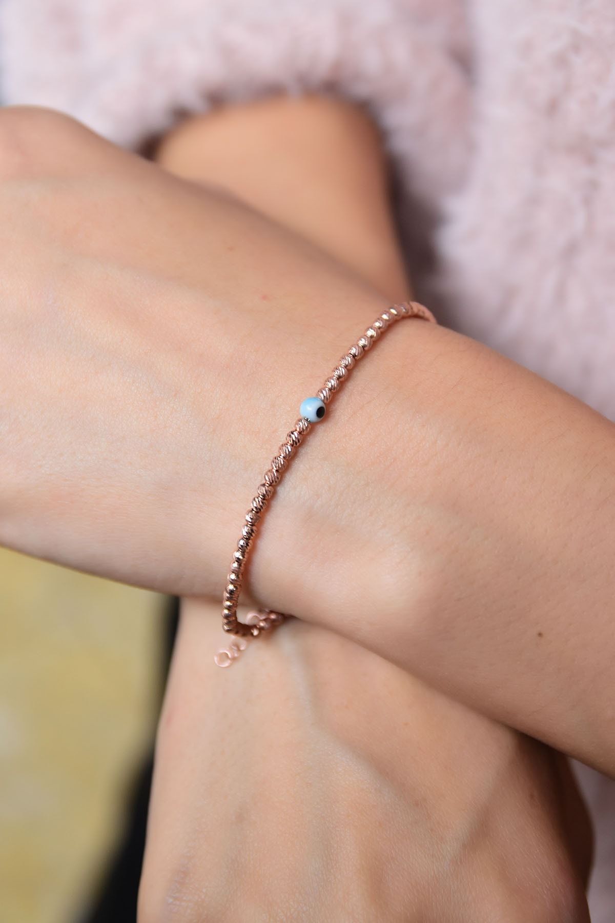 Etiketler925 Ayar Gümüş Rose Kaplama Dorika Toplu Nazar Göz Bileklik