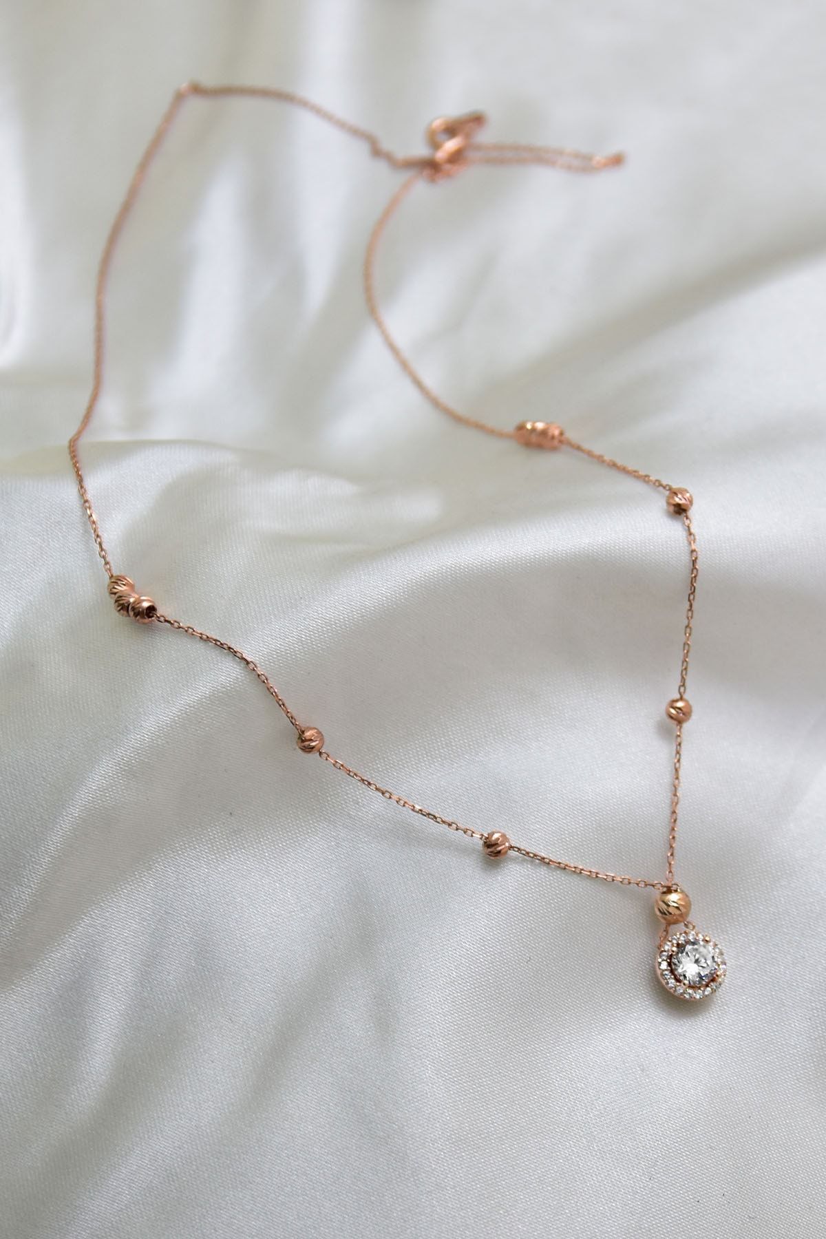 Maden : 925 Ayar Gümüş.Kaplama: Rose Altın.En x Boy: 0,7 x 0,7 cm.Zincir Uzunluğu: 42 cm.Taş: Zirkon.Ürün Ağırlığı : 2,15 Gr ( +-). Gümüş ve değerli taşlar nedeniyle belirtilen ortalama ürün ağırlığında ± %5 sapma olabilmektedir.Teslimat: Ürün ahşap hediye kutusunda gönderilecektir.