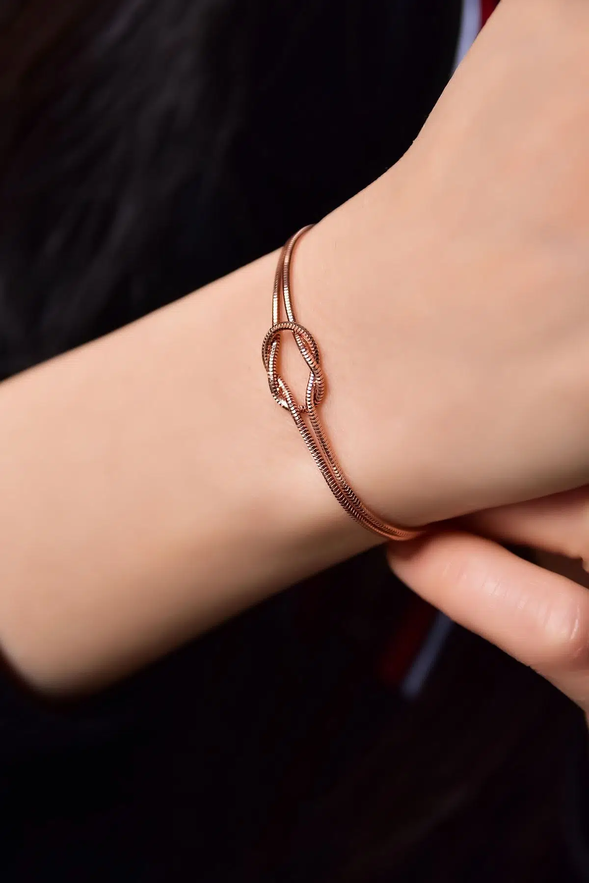 Maden Ayar: 925 Ayar Gümüş. Maden Kaplama: Rose . Bileklik: 18 cm. Ürün Ağırlığı: 3,01 cm. ''Gümüş ürünlerin yapısı gereği kararmalar meydana gelebilir daha uzun ömürlü olması için ; Parfüm gibi kozmetik ürünlere direkt temas etmediği sürece ürün ömrü daha uzun olacaktır.''