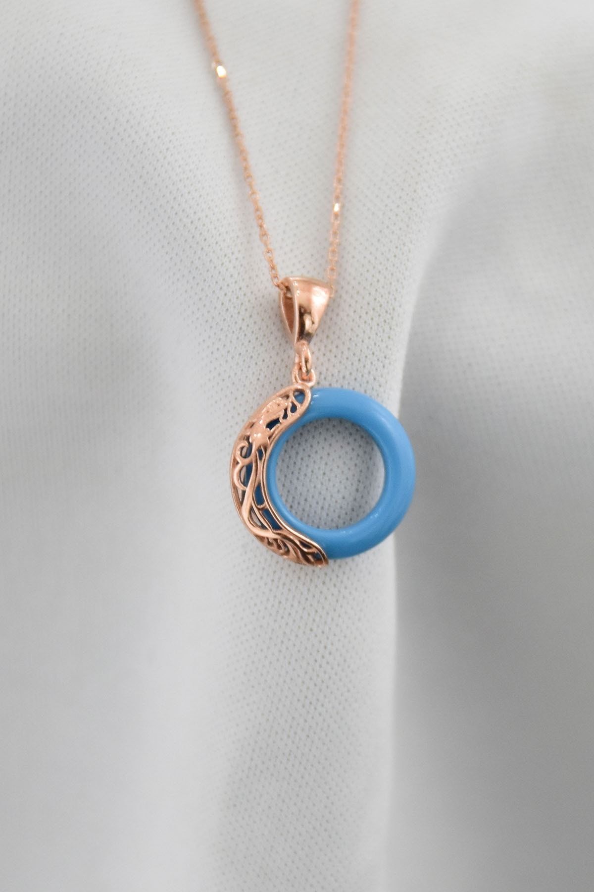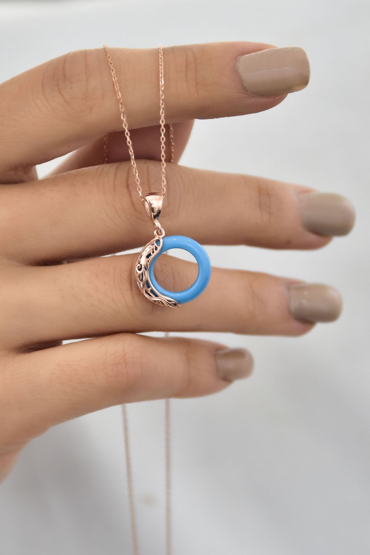 Maden : 925 Ayar Gümüş.. Kaplama: Rose Altın. Zincir Uzunluğu: 42 cm. En x Boy: 1,5 x 2,3 cm. Taş: Cam. Ürün Ağırlığı : 2,05 Gr ( +-). Gümüş ve değerli taşlar nedeniyle belirtilen ortalama ürün ağırlığında ± %5 sapma olabilmektedir. Teslimat: Ürün ahşap hediye kutusunda gönderilecektir. Kullanım: Parfüm,dezenfektan,çamaşır suyu gibi kimyasallardan uzak tutunuz.